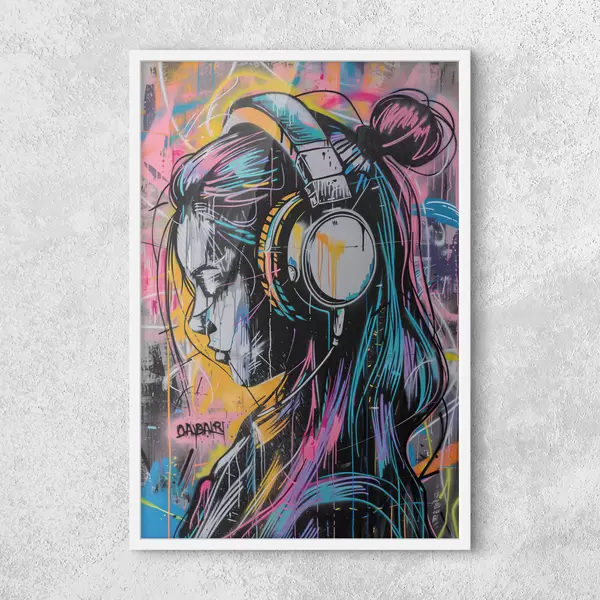 Poster Frau mit Kopfhörern im Graffiti-Stil Nr f39443