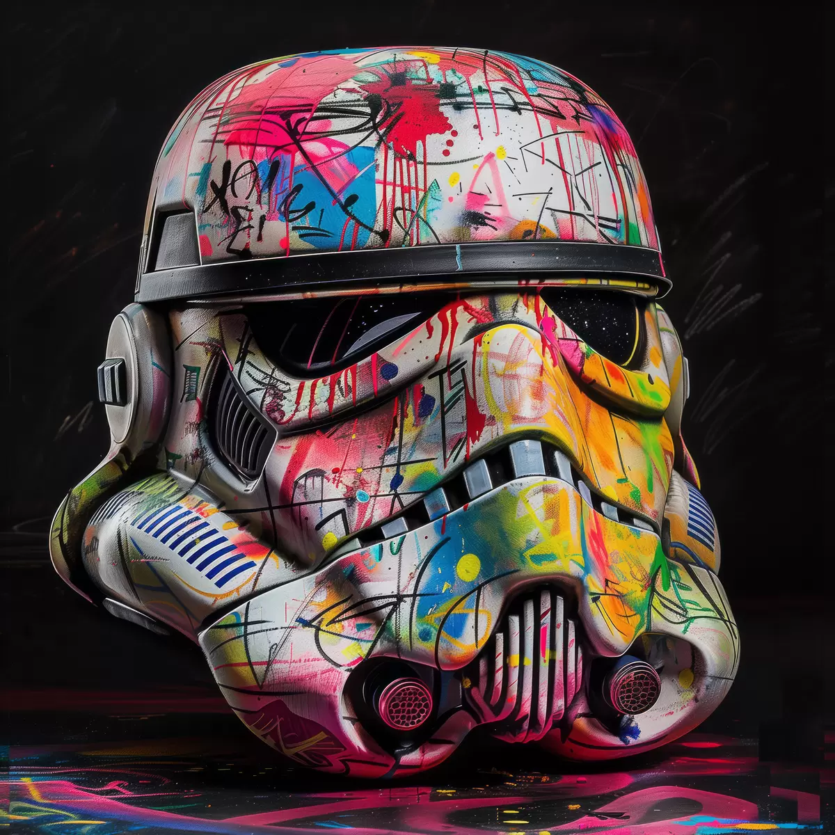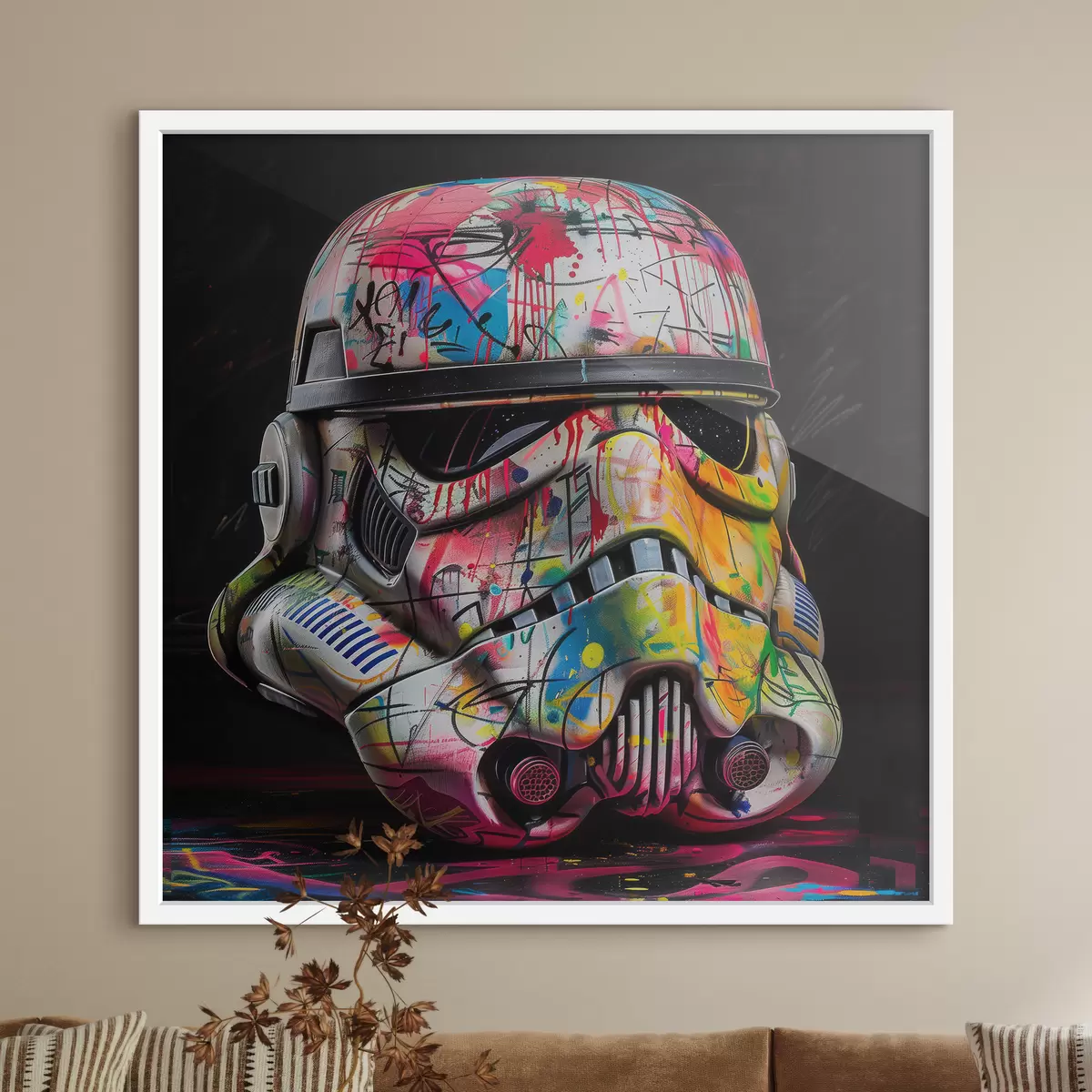 Poster Ein Star Wars Sturmtruppler-Helm voller lebendiger Street Art und Graffiti f39453