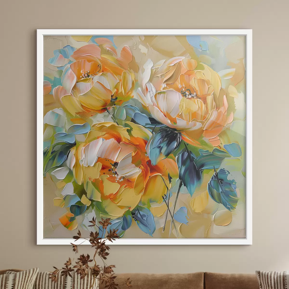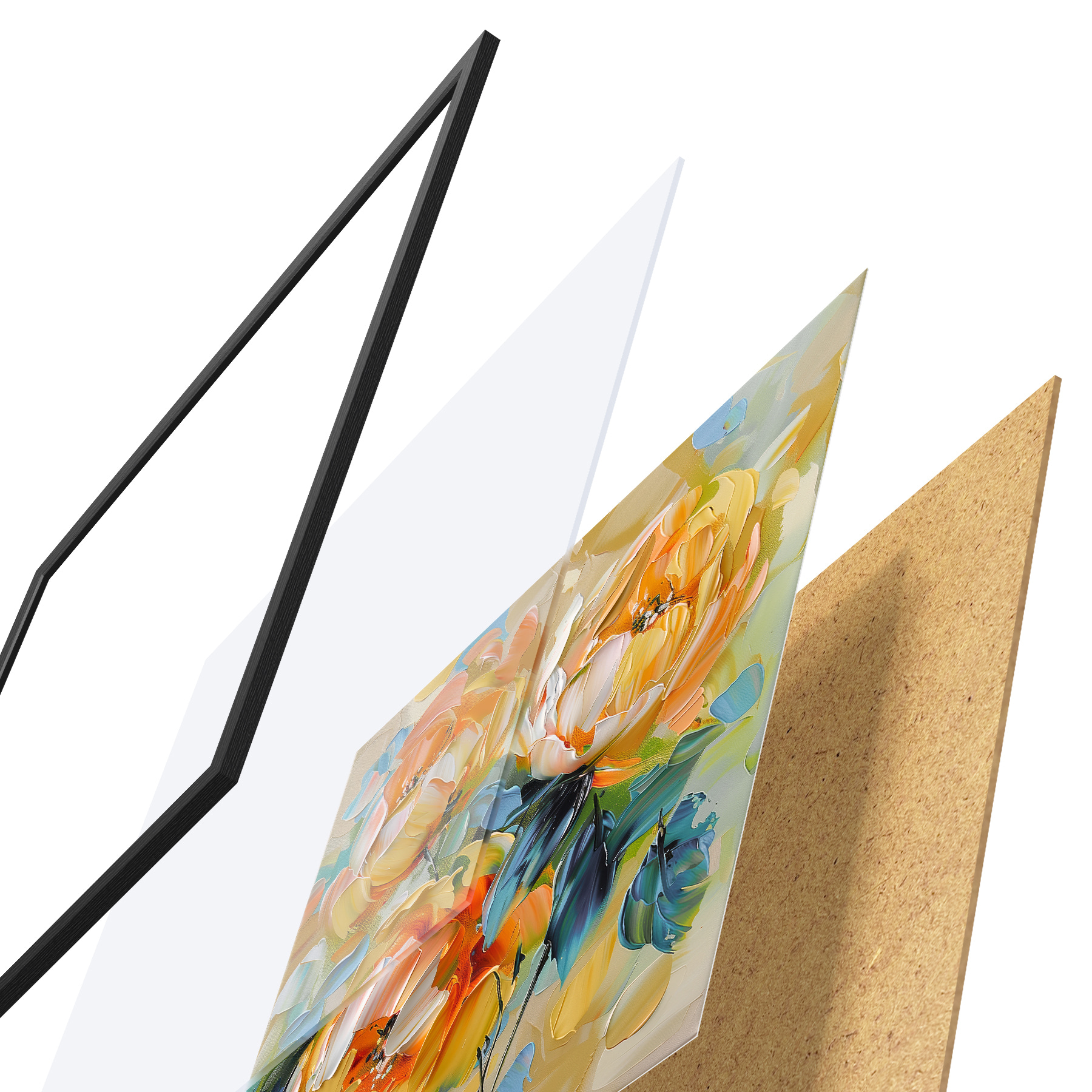Poster Lebendige Blüten mit reichen Texturen in einer farbenfrohen abstrakten Komposition Nr f39460