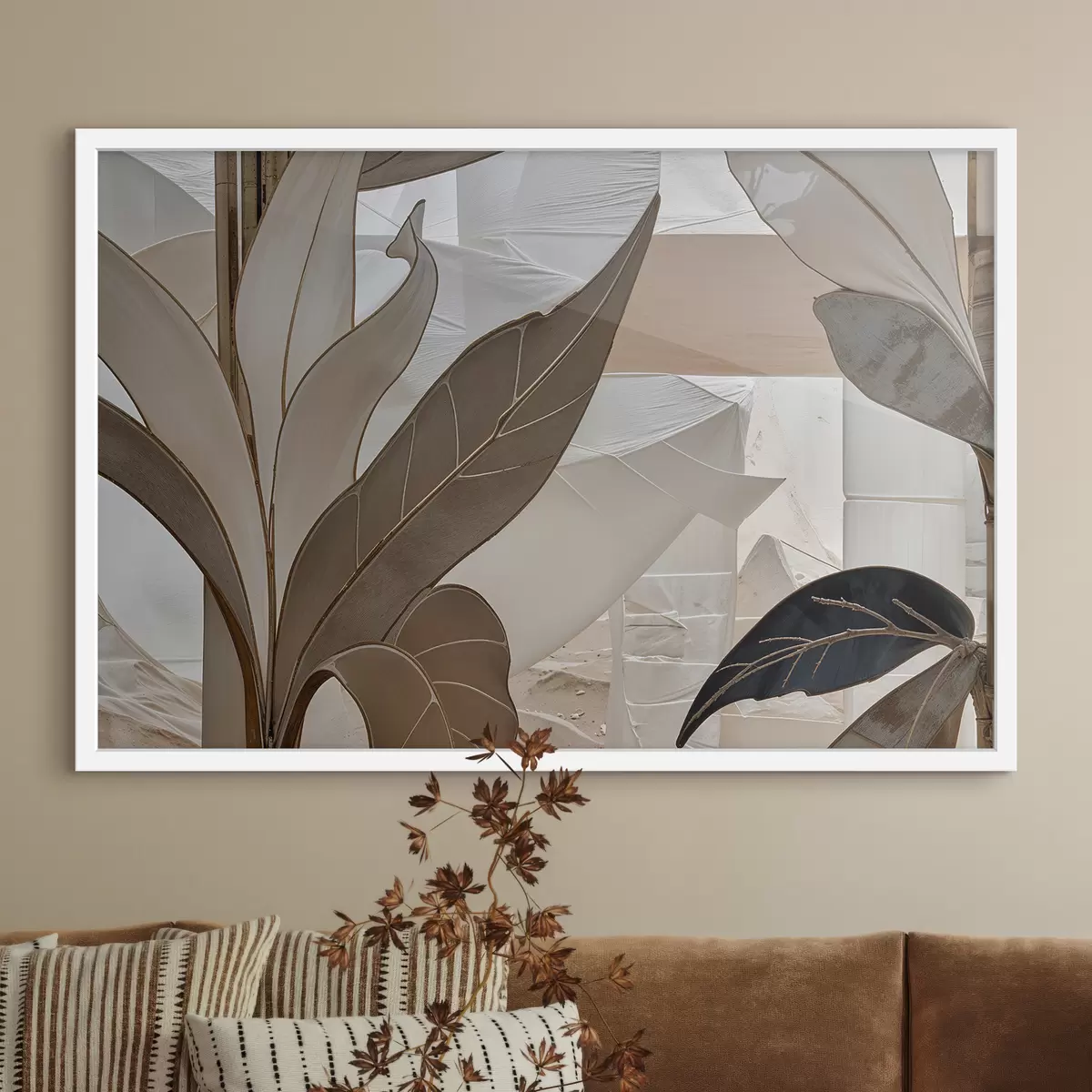 Poster Eine Nahaufnahme eines abstrakten geometrischen Musters mit überlappenden Formen und Texturen in Beigetönen Nr f39498