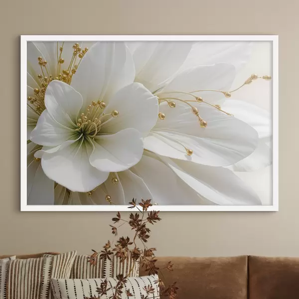 Poster Eine Nahaufnahme einer großen weißen Blume mit zarten Blütenblättern f39507