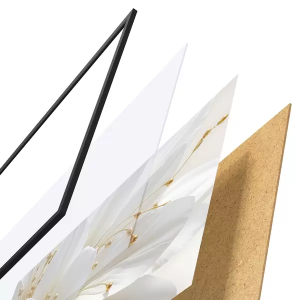 Das Poster besteht aus einem Rahmen, Plexiglas, einem gedruckten Bild und einer Rückwand aus Spanplatten. Dank der Halterungen auf der Rückseite kann das Poster sofort an die Wand gehängt werden.