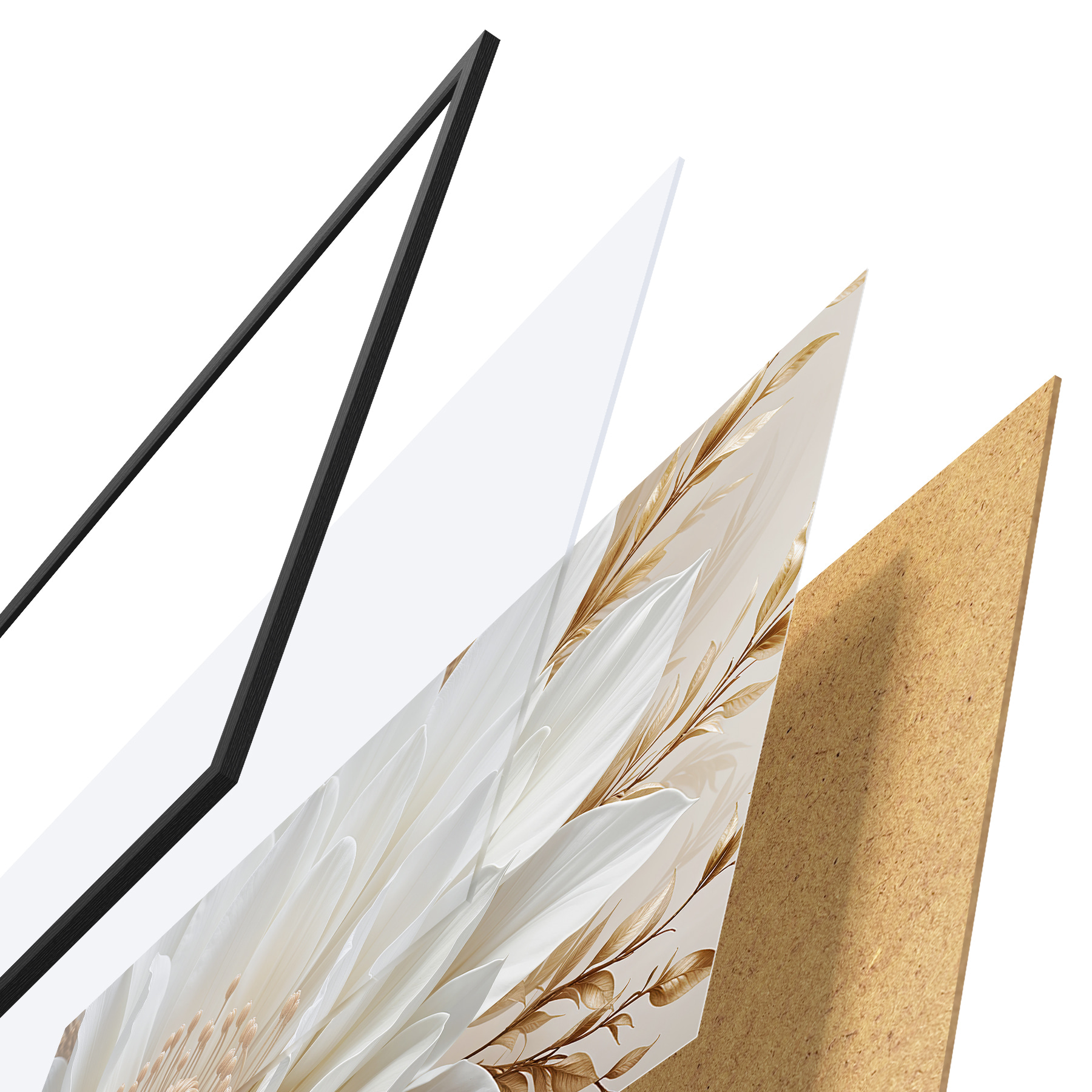 Poster Eine Nahaufnahme einer großen, weißen Dahlienblüte mit zarten Blütenblättern und einer leuchtend gelben Mitte Nr f39508