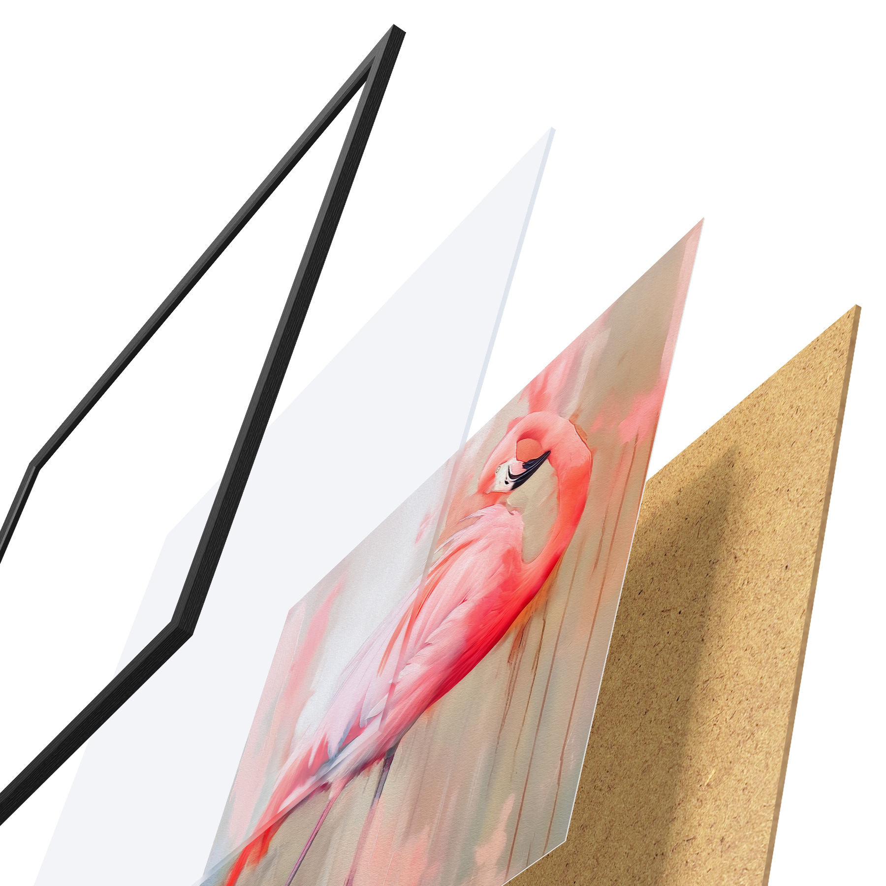 Das Poster besteht aus einem Rahmen, Plexiglas, einem gedruckten Bild und einer Rückwand aus Spanplatten. Dank der Halterungen auf der Rückseite kann das Poster sofort an die Wand gehängt werden.