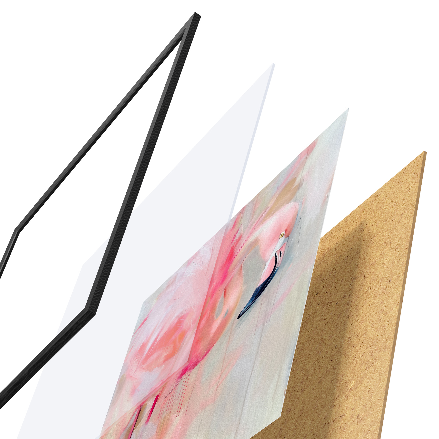 Das Poster besteht aus einem Rahmen, Plexiglas, einem gedruckten Bild und einer Rückwand aus Spanplatten. Dank der Halterungen auf der Rückseite kann das Poster sofort an die Wand gehängt werden.