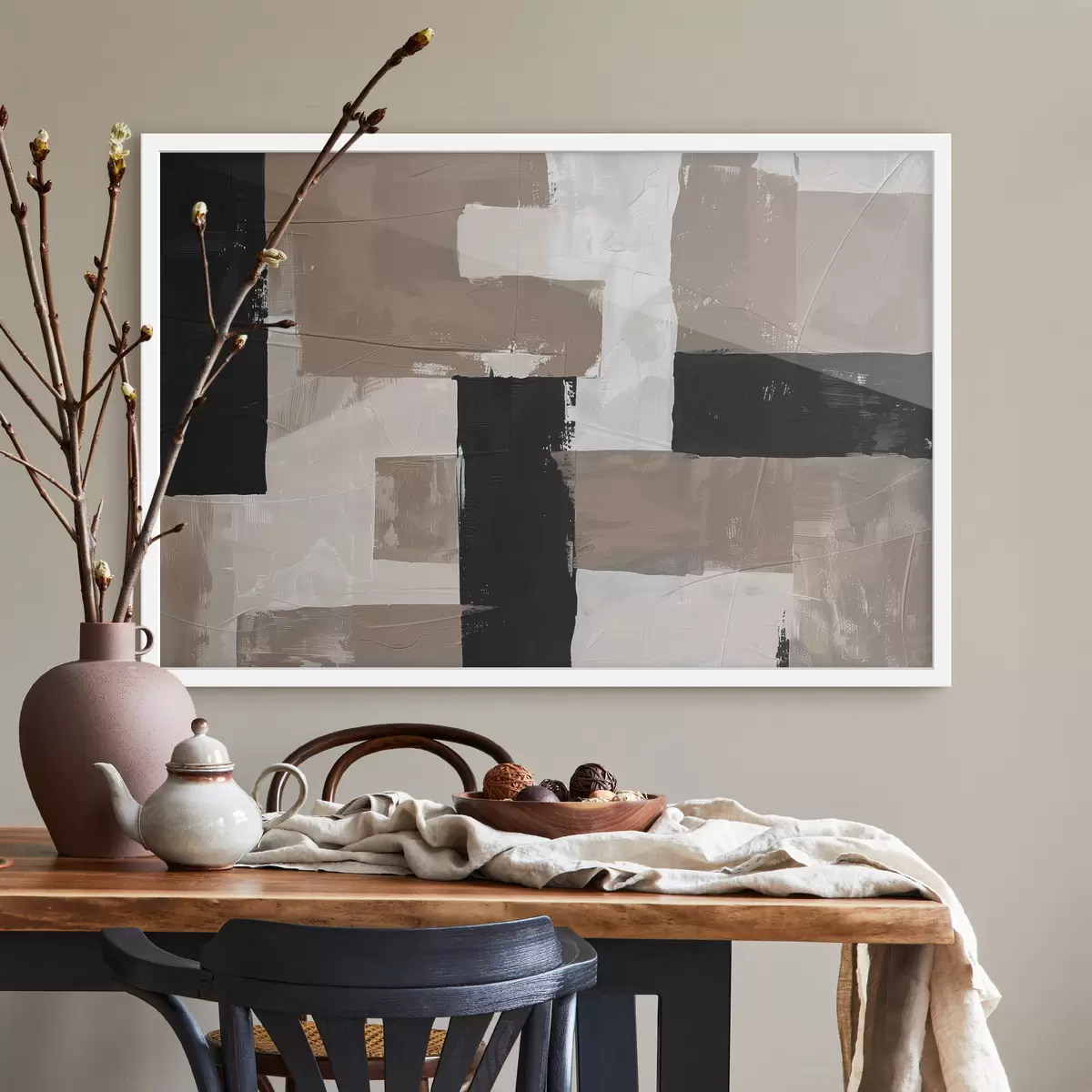Das Poster besteht aus einem Rahmen, Plexiglas, einem gedruckten Bild und einer Rückwand aus Spanplatten. Dank der Halterungen auf der Rückseite kann das Poster sofort an die Wand gehängt werden.