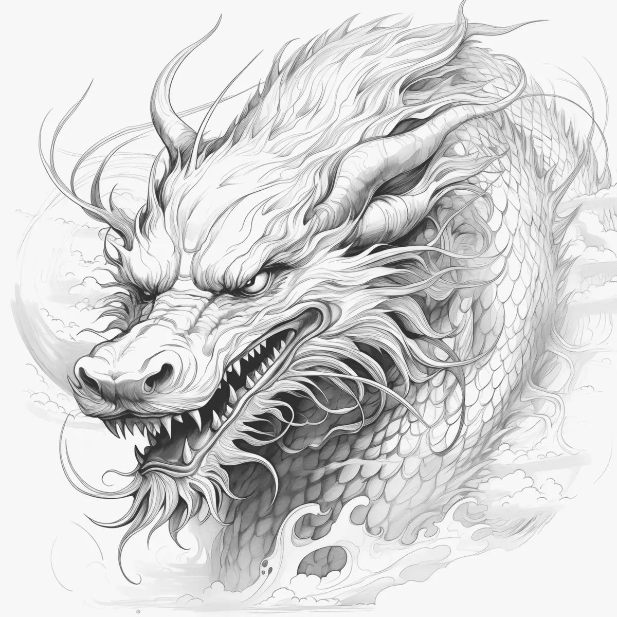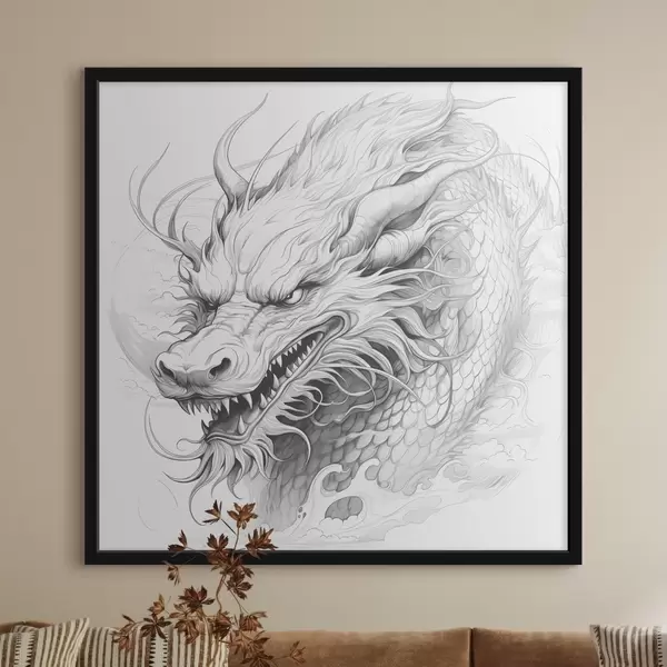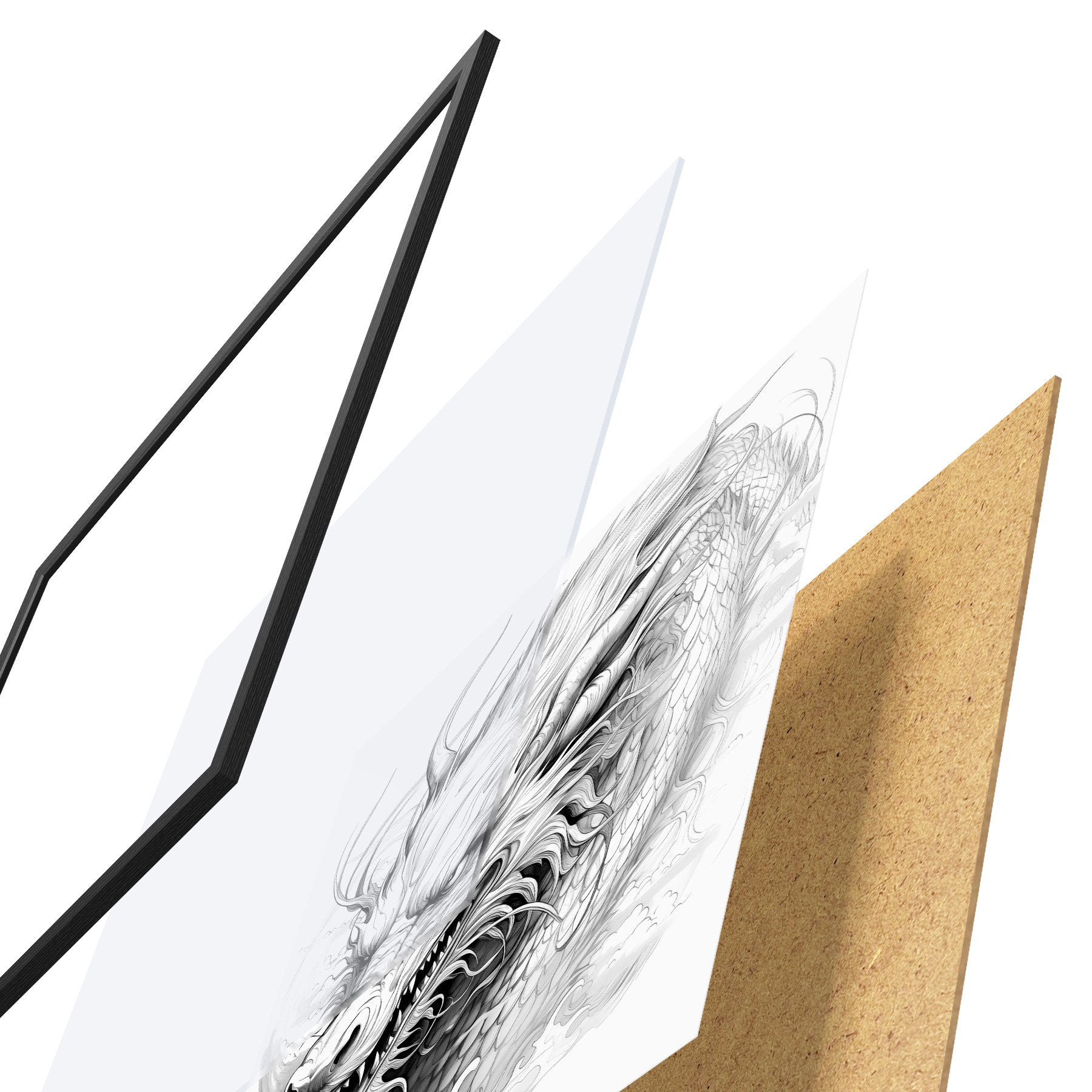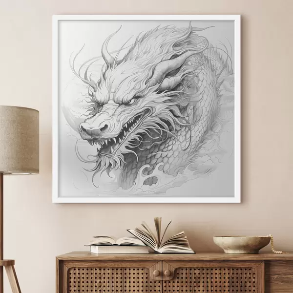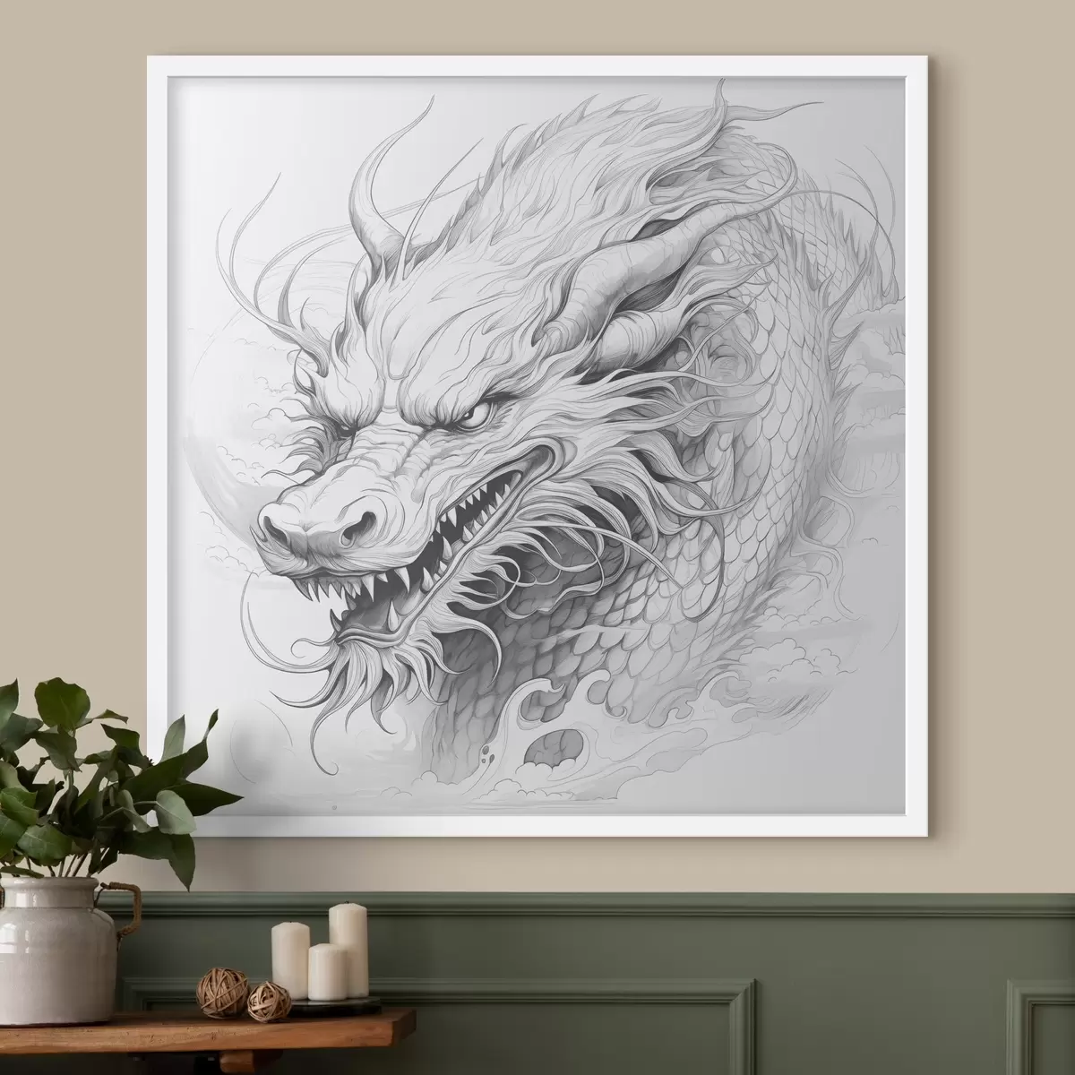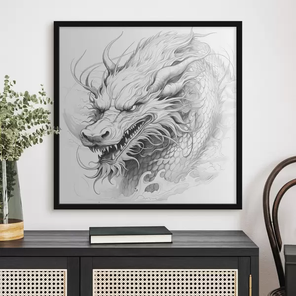 Poster Monochrome Strichzeichnung eines Drachens im chinesischen Stil Nr f39563