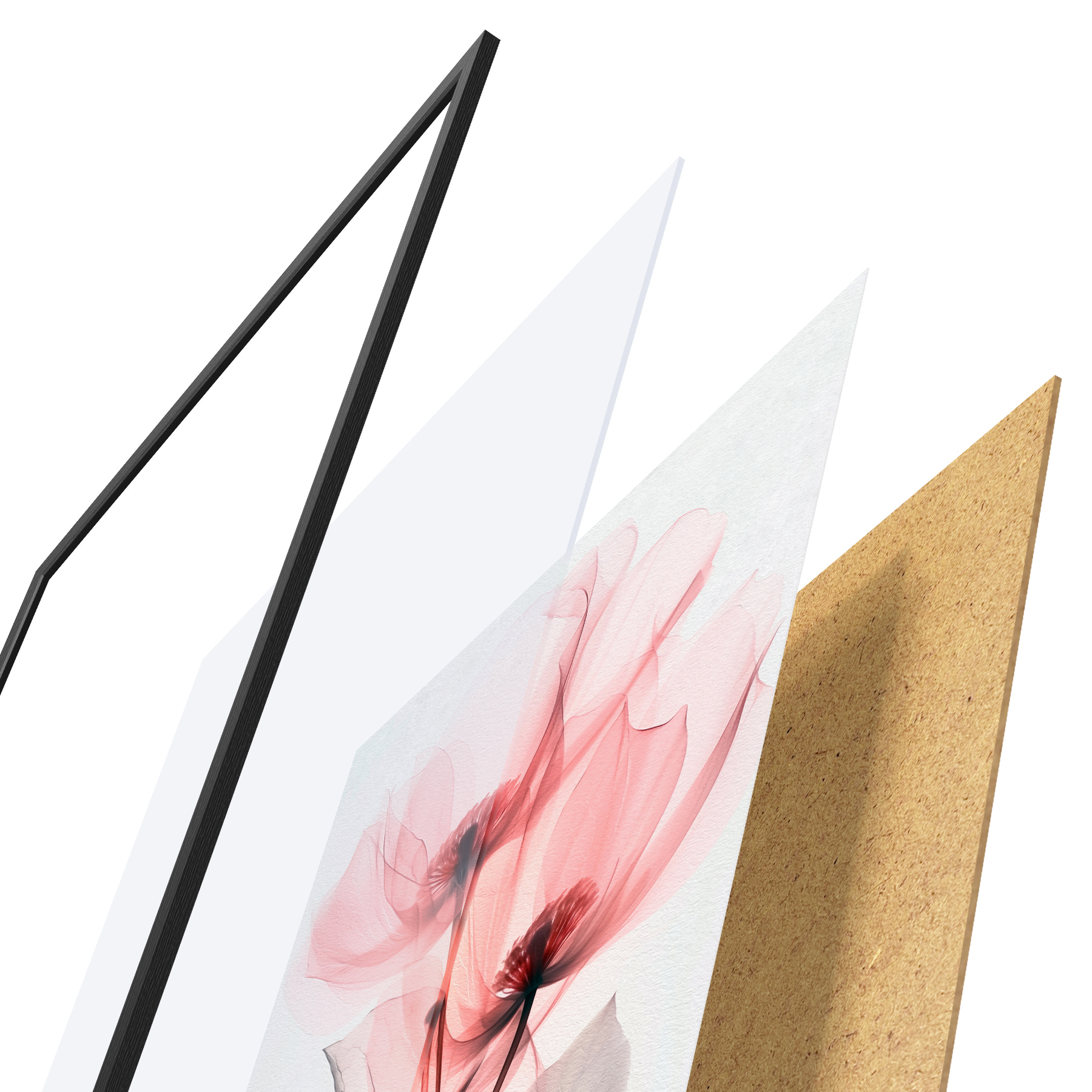 Das Poster besteht aus einem Rahmen, Plexiglas, einem gedruckten Bild und einer Rückwand aus Spanplatten. Dank der Halterungen auf der Rückseite kann das Poster sofort an die Wand gehängt werden.
