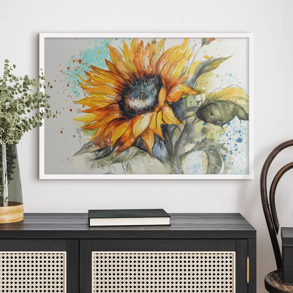 Poster Aquarell-Sonnenblume mit Farbspritzern Nr f39583