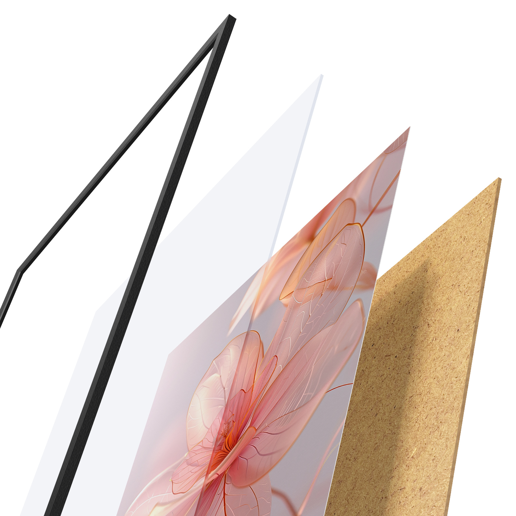 Das Poster besteht aus einem Rahmen, Plexiglas, einem gedruckten Bild und einer Rückwand aus Spanplatten. Dank der Halterungen auf der Rückseite kann das Poster sofort an die Wand gehängt werden.