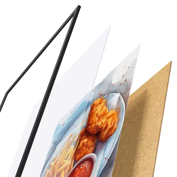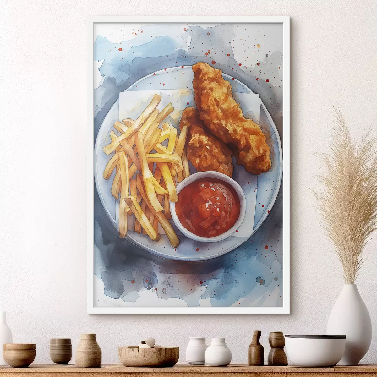 Poster Aquarell Street Food, Pommes Frites mit gebratenem Huhn, lecker Nr f39709