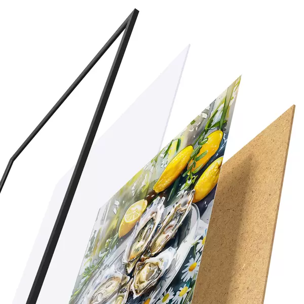 Das Poster besteht aus einem Rahmen, Plexiglas, einem gedruckten Bild und einer Rückwand aus Spanplatten. Dank der Halterungen auf der Rückseite kann das Poster sofort an die Wand gehängt werden.
