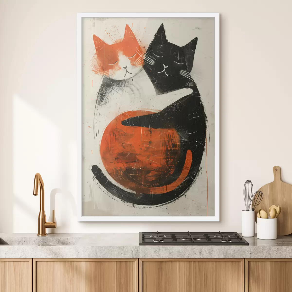 Poster Minimalistische Tuscheillustration von zwei süßen Katzen Nr f39725