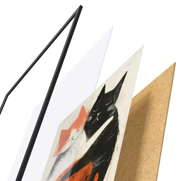 Das Poster besteht aus einem Rahmen, Plexiglas, einem gedruckten Bild und einer Rückwand aus Spanplatten. Dank der Halterungen auf der Rückseite kann das Poster sofort an die Wand gehängt werden.