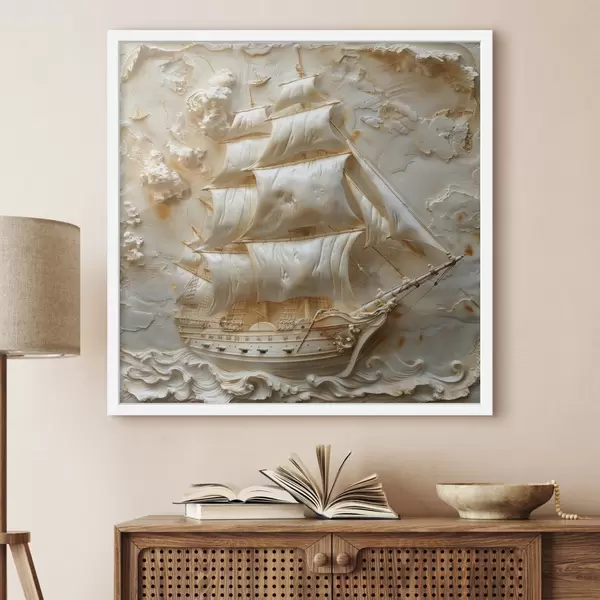 Poster Flachrelief eines Schiffes, das auf dem Meer segelt Nr f39757