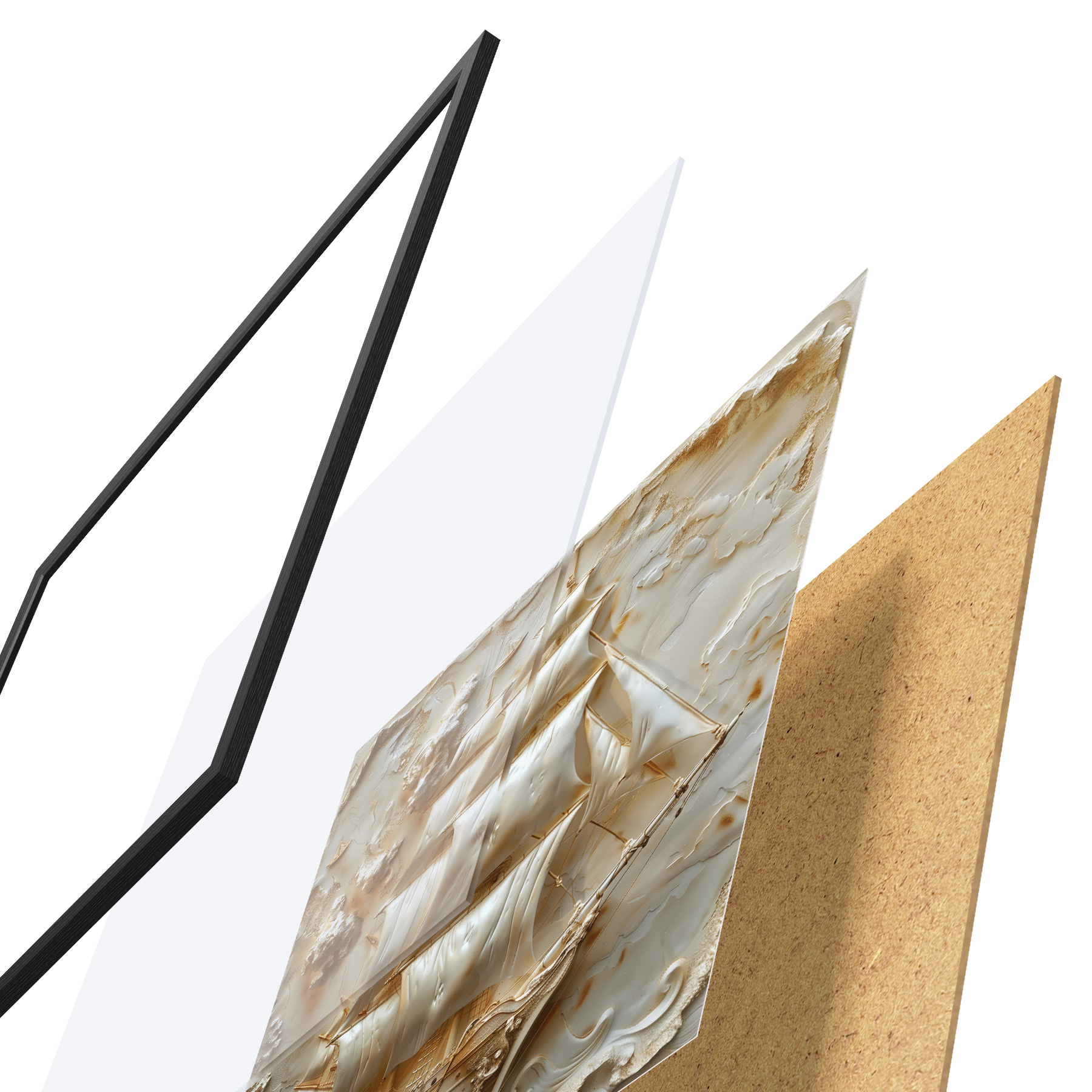 Das Poster besteht aus einem Rahmen, Plexiglas, einem gedruckten Bild und einer Rückwand aus Spanplatten. Dank der Halterungen auf der Rückseite kann das Poster sofort an die Wand gehängt werden.