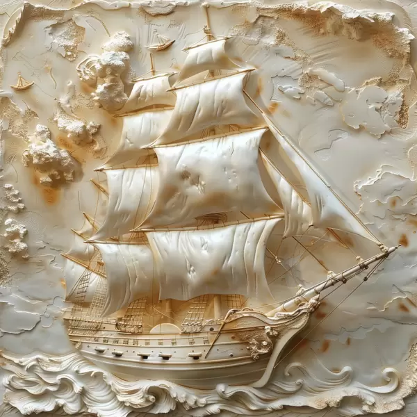 Poster Flachrelief eines Schiffes, das auf dem Meer segelt f39757