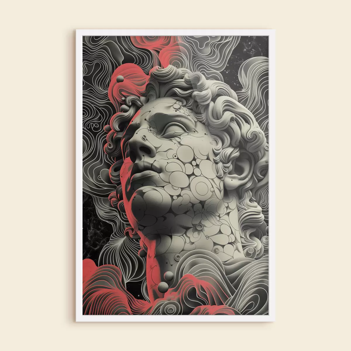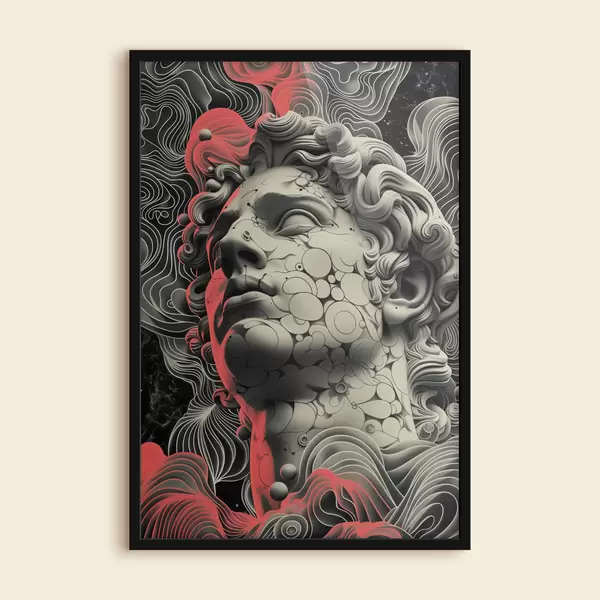 Poster Schwarz-weiße lineare Darstellung des Kopfes des griechischen Gottes Apollo im Pop-Art-Stil Nr f39763