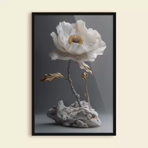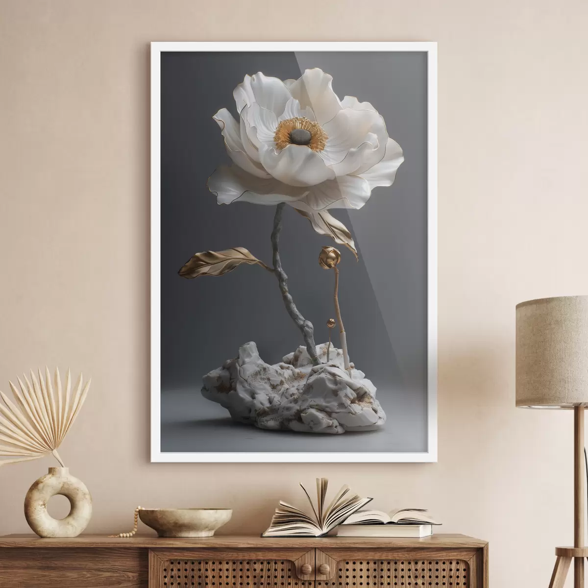 Poster Anmutiger weißer Lotus blüht aus Stein Nr f39765