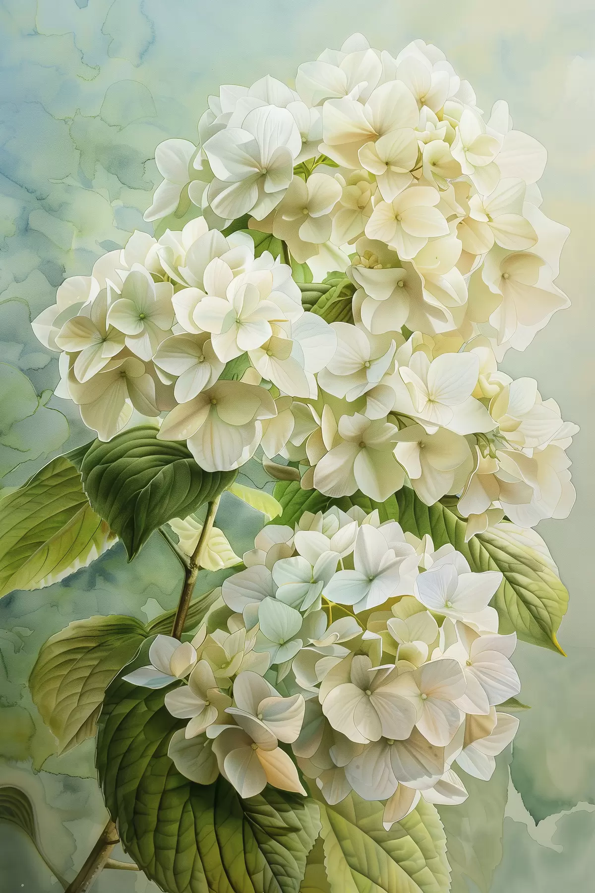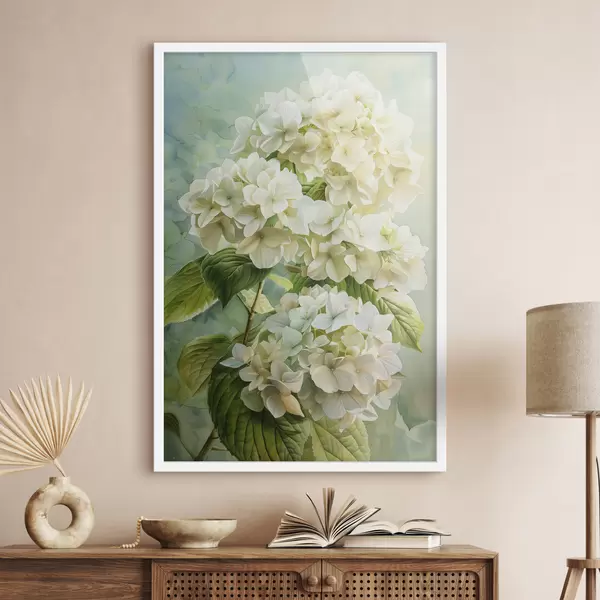 Poster Hortensienblüte, Blumen, sanfte Naturfarben, Aquarellzeichnung Nr f39782