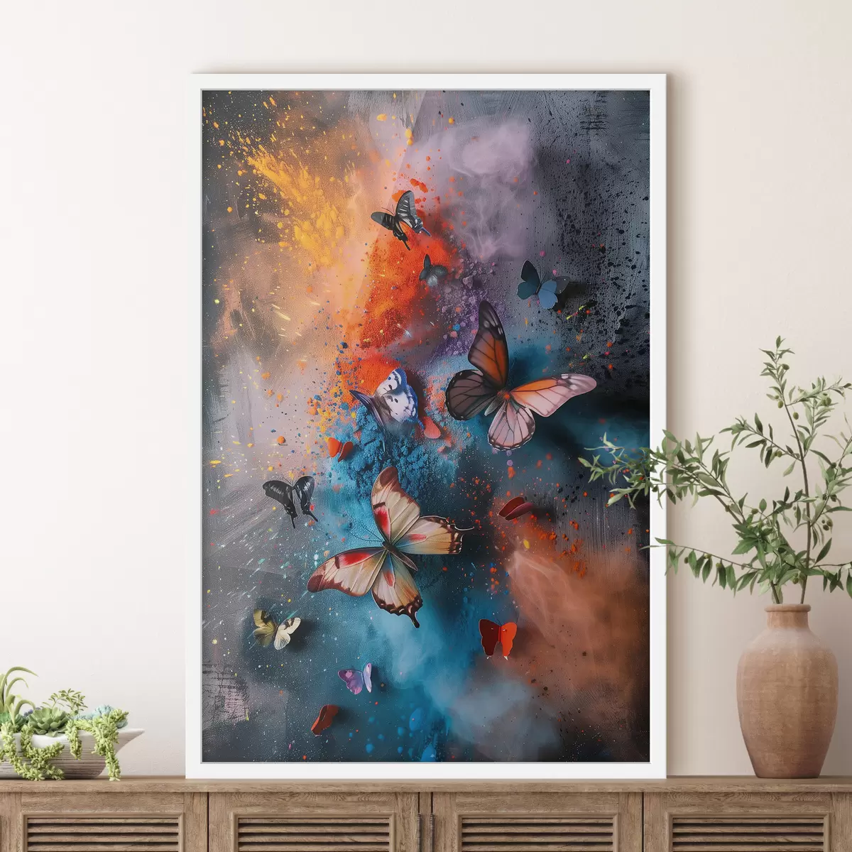 Poster Schmetterlinge auf einem Hintergrund aus Farbspritzern Nr f39803