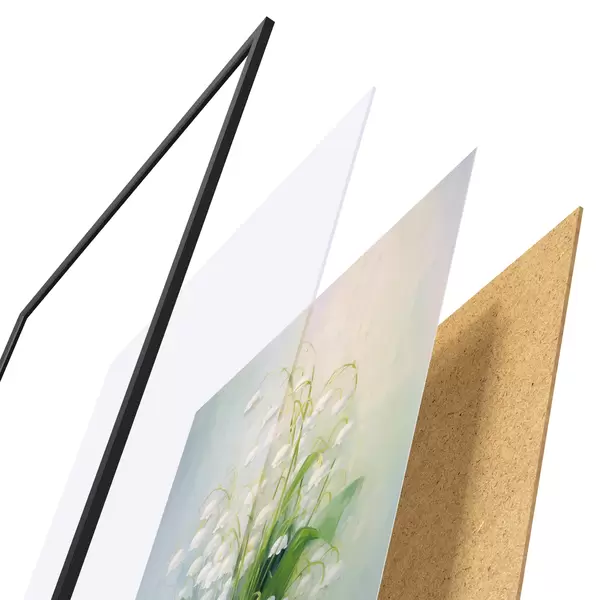 Das Poster besteht aus einem Rahmen, Plexiglas, einem gedruckten Bild und einer Rückwand aus Spanplatten. Dank der Halterungen auf der Rückseite kann das Poster sofort an die Wand gehängt werden.