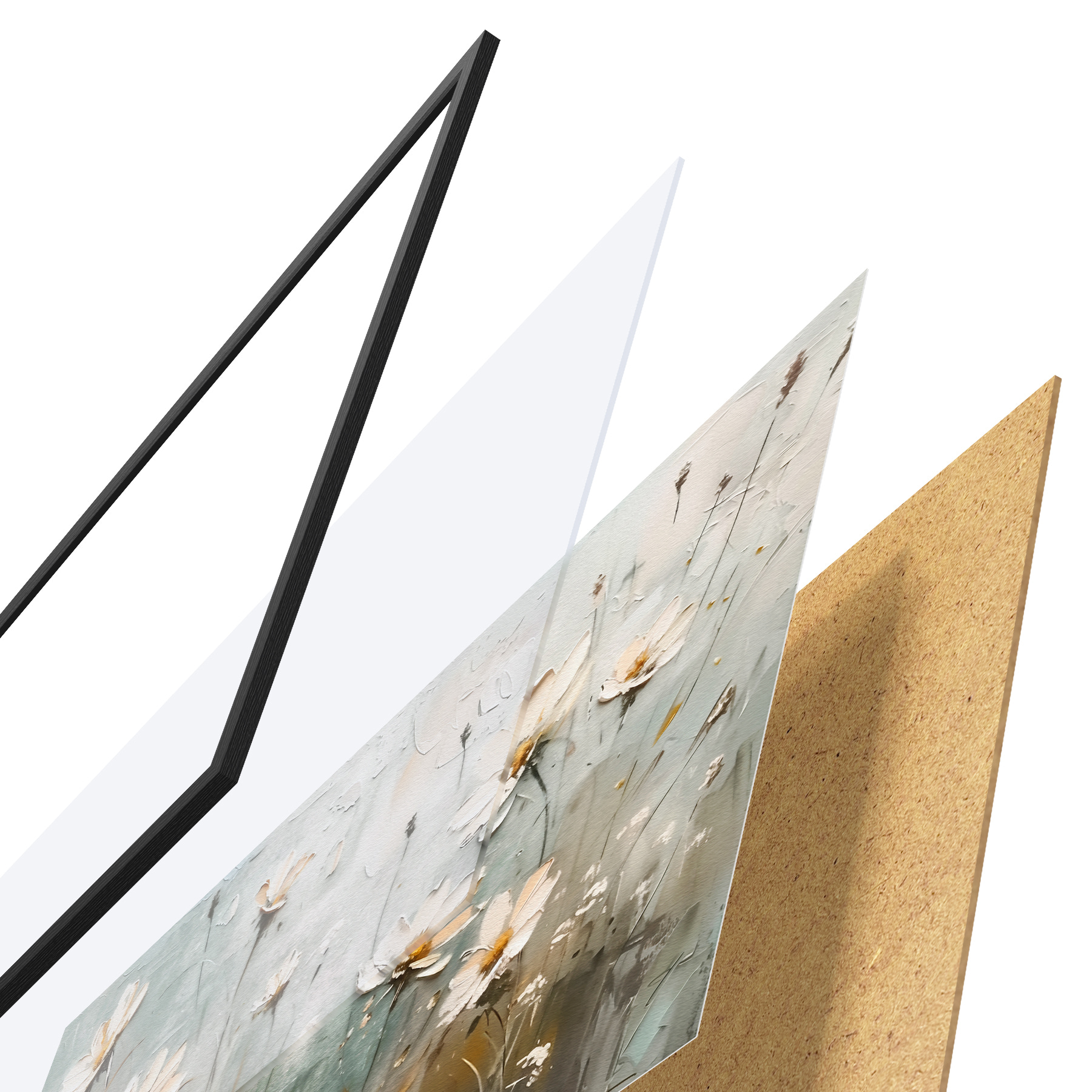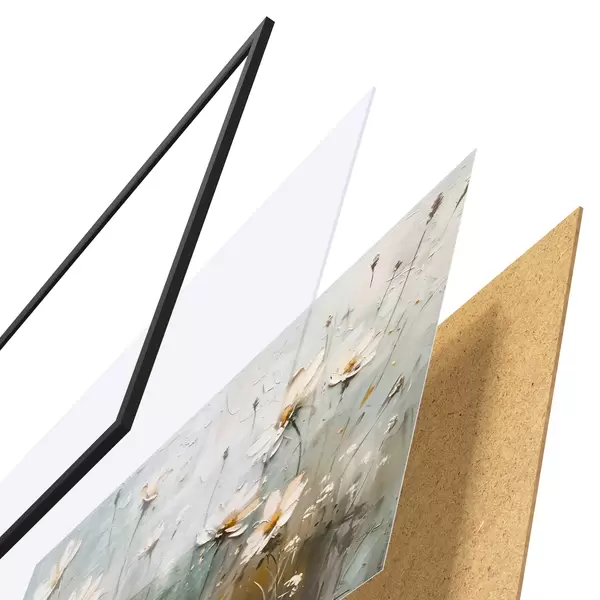 Das Poster besteht aus einem Rahmen, Plexiglas, einem gedruckten Bild und einer Rückwand aus Spanplatten. Dank der Halterungen auf der Rückseite kann das Poster sofort an die Wand gehängt werden.