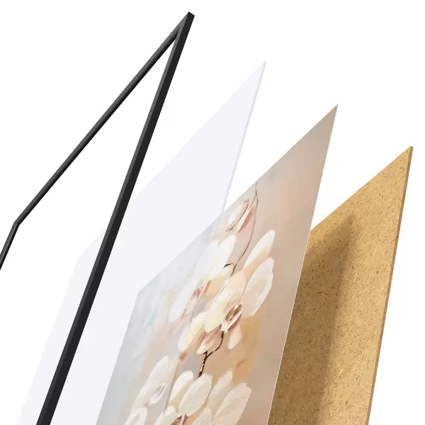 Das Poster besteht aus einem Rahmen, Plexiglas, einem gedruckten Bild und einer Rückwand aus Spanplatten. Dank der Halterungen auf der Rückseite kann das Poster sofort an die Wand gehängt werden.