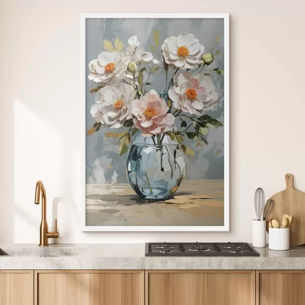 Poster Weiße Blumen in transparenter Vase Nr f39850