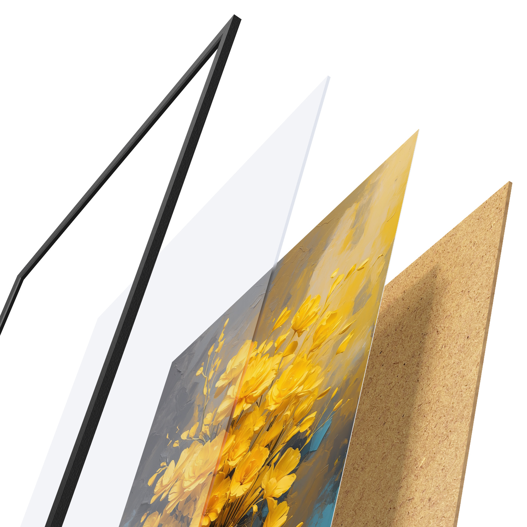 Poster Gelbe Blumen in der Vase auf buntem Acryl-Hintergrund Nr f39854