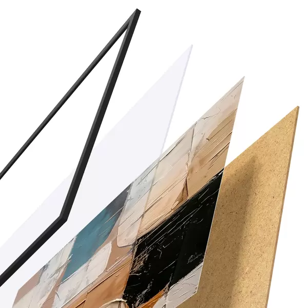 Das Poster besteht aus einem Rahmen, Plexiglas, einem gedruckten Bild und einer Rückwand aus Spanplatten. Dank der Halterungen auf der Rückseite kann das Poster sofort an die Wand gehängt werden.
