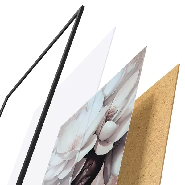 Das Poster besteht aus einem Rahmen, Plexiglas, einem gedruckten Bild und einer Rückwand aus Spanplatten. Dank der Halterungen auf der Rückseite kann das Poster sofort an die Wand gehängt werden.