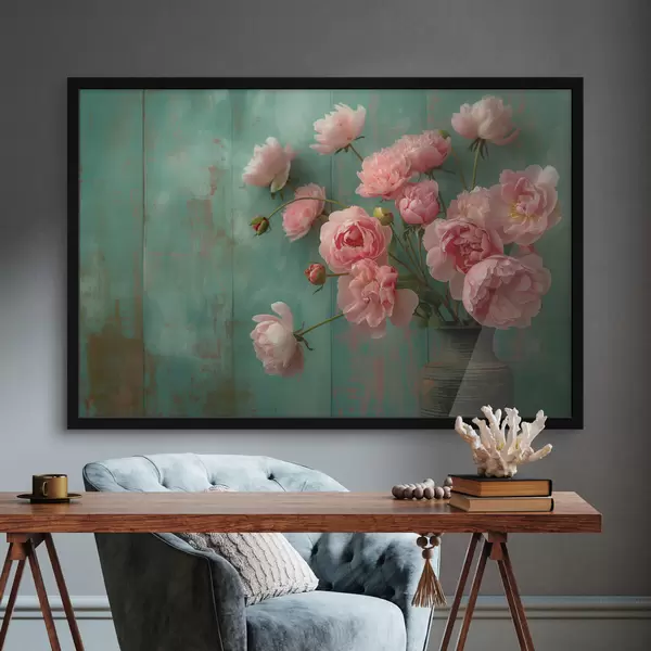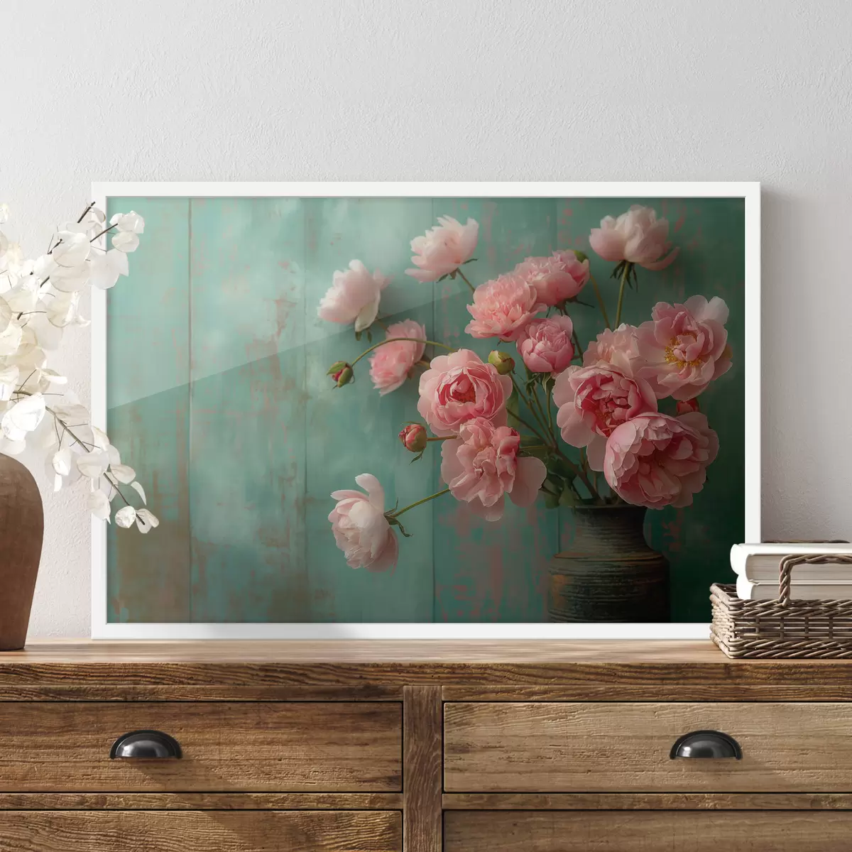 Poster Rosa Blumen, Holz, antik Nr f39957