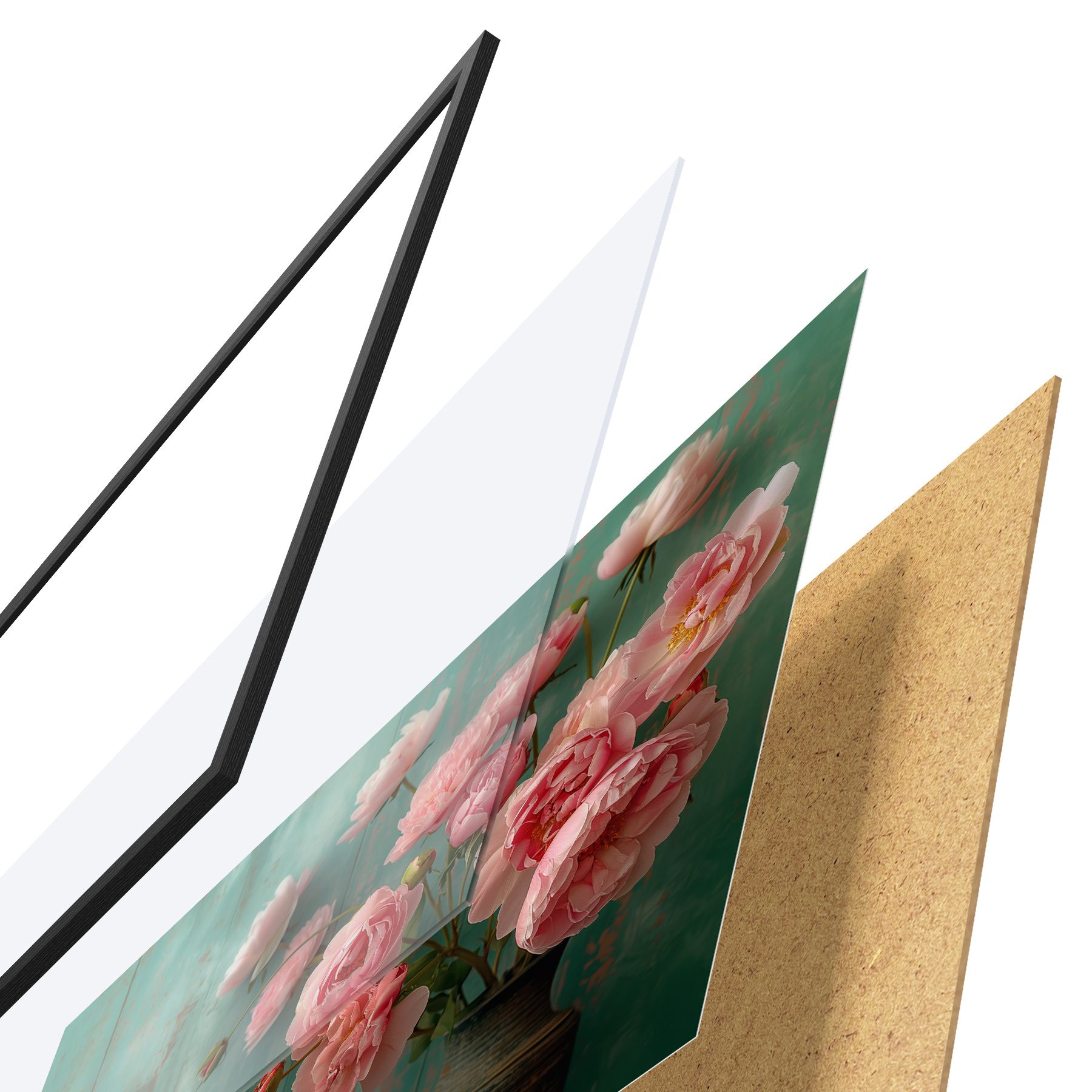 Das Poster besteht aus einem Rahmen, Plexiglas, einem gedruckten Bild und einer Rückwand aus Spanplatten. Dank der Halterungen auf der Rückseite kann das Poster sofort an die Wand gehängt werden.