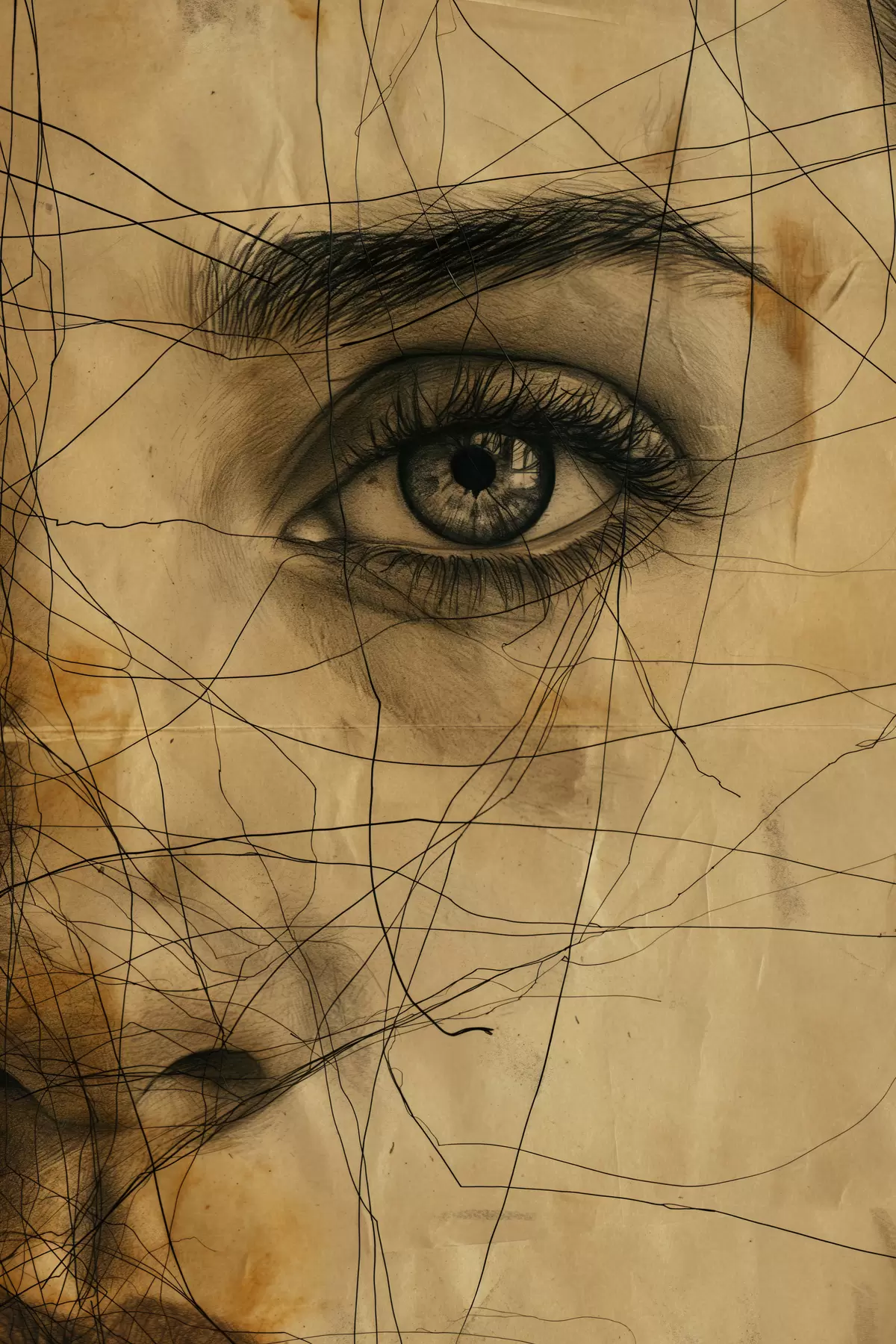 Poster Linien, Bleistift, Abstraktion, antik, Mädchen Nr f39960