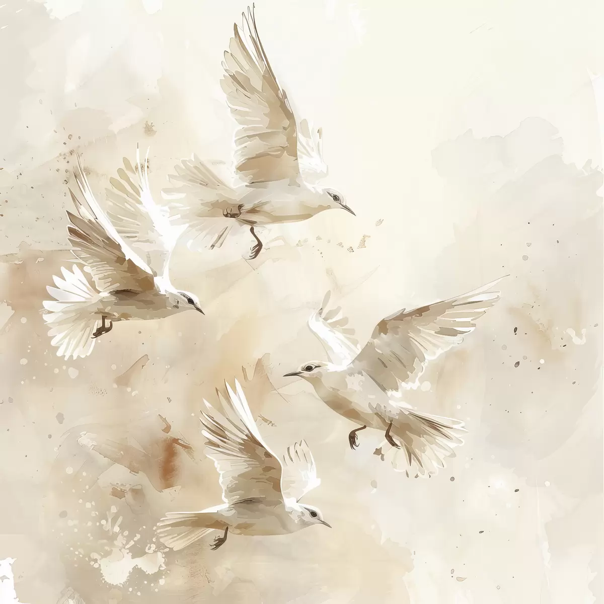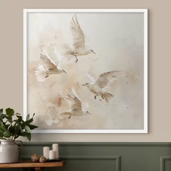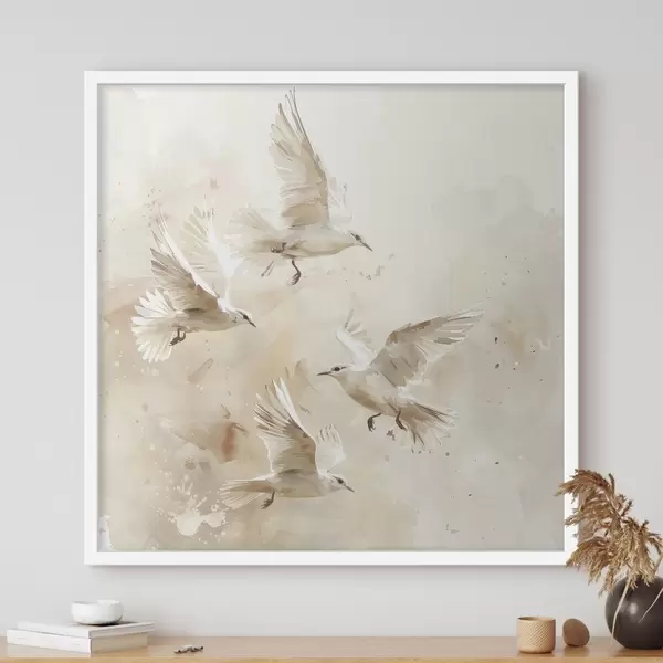 Poster Aquarell fliegende Vögel, zarte Pastellfarben, Abstraktion Nr f39973
