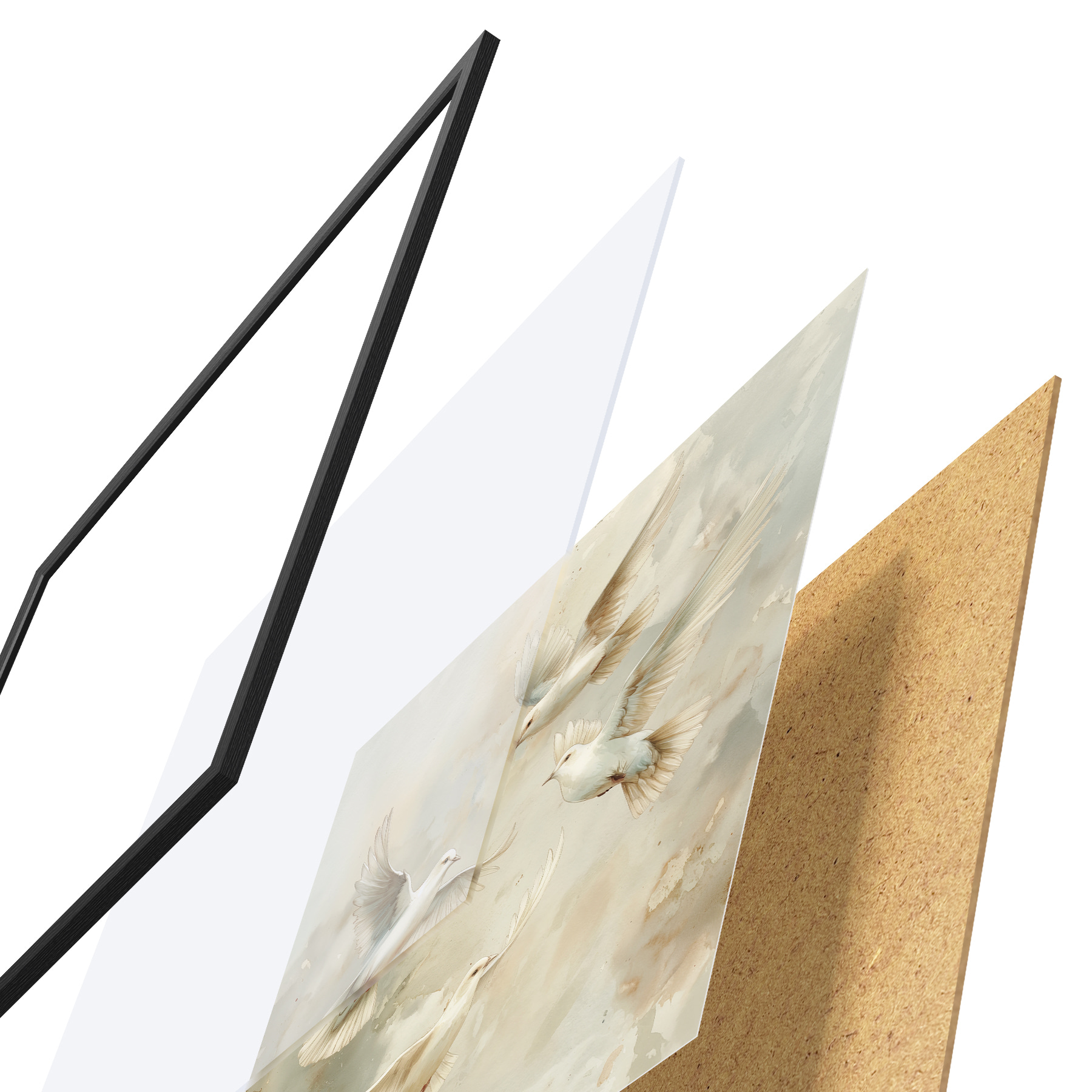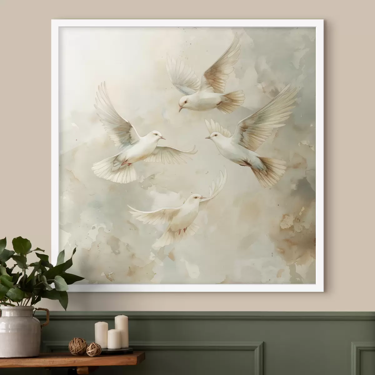 Poster Aquarell fliegende Vögel, zarte beige und weiße Farben, Tauben Nr f39976