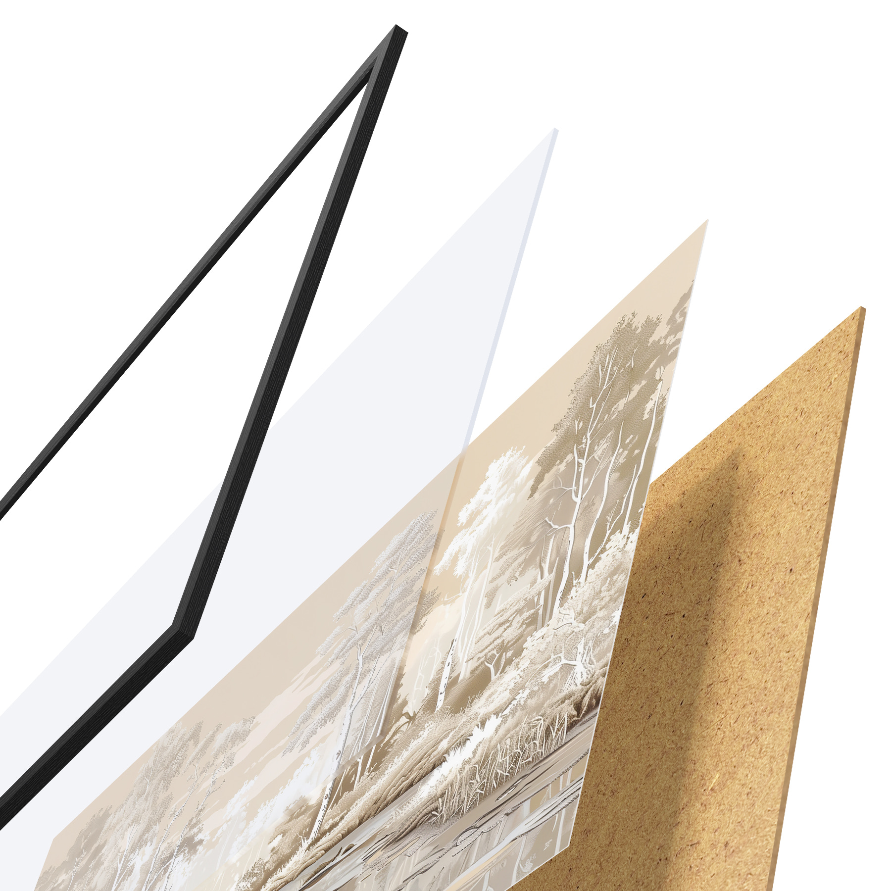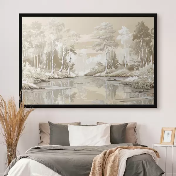 Poster Wunderschöne Waldlandschaft, sanfte Pastellfarben, Beige und Weiß Nr f39978