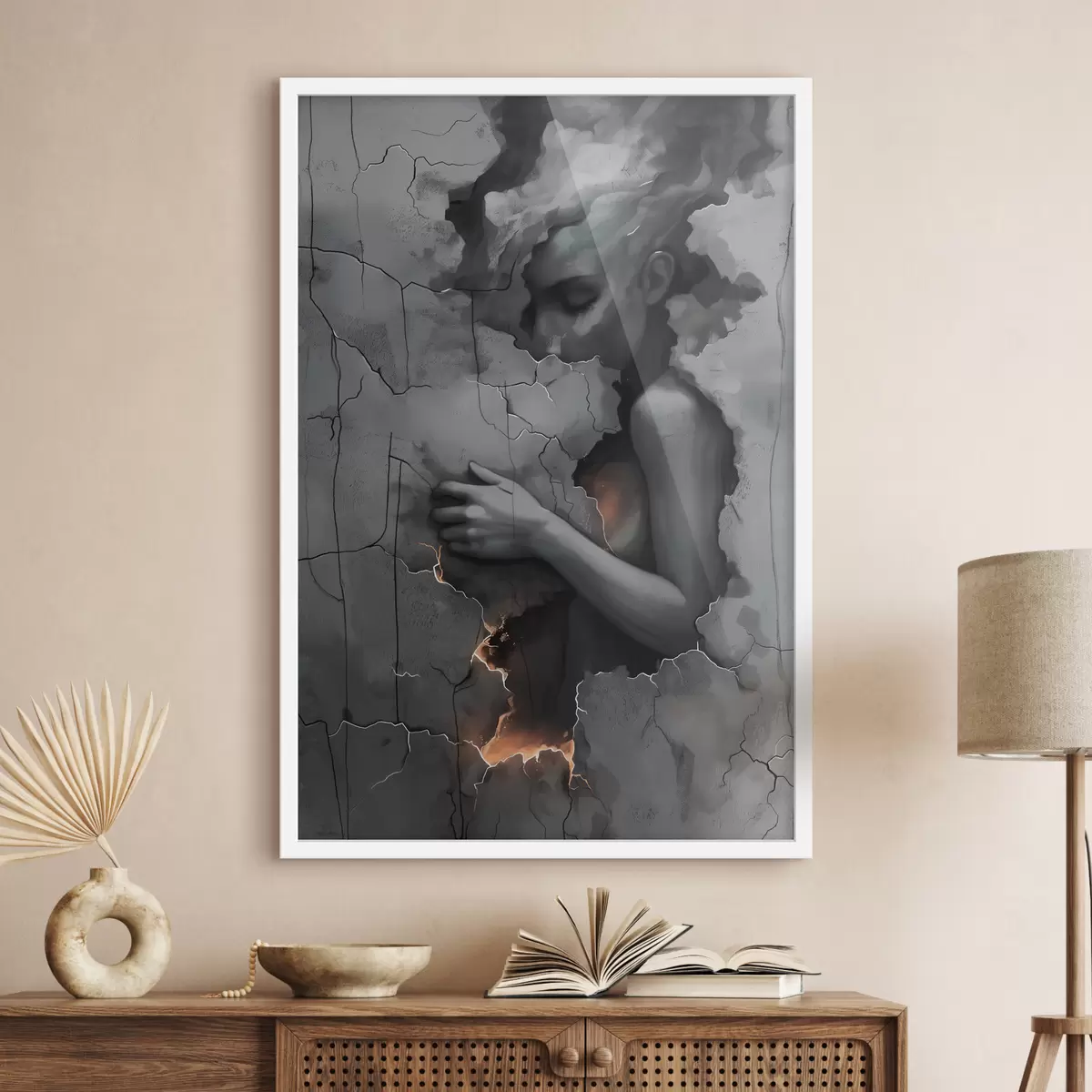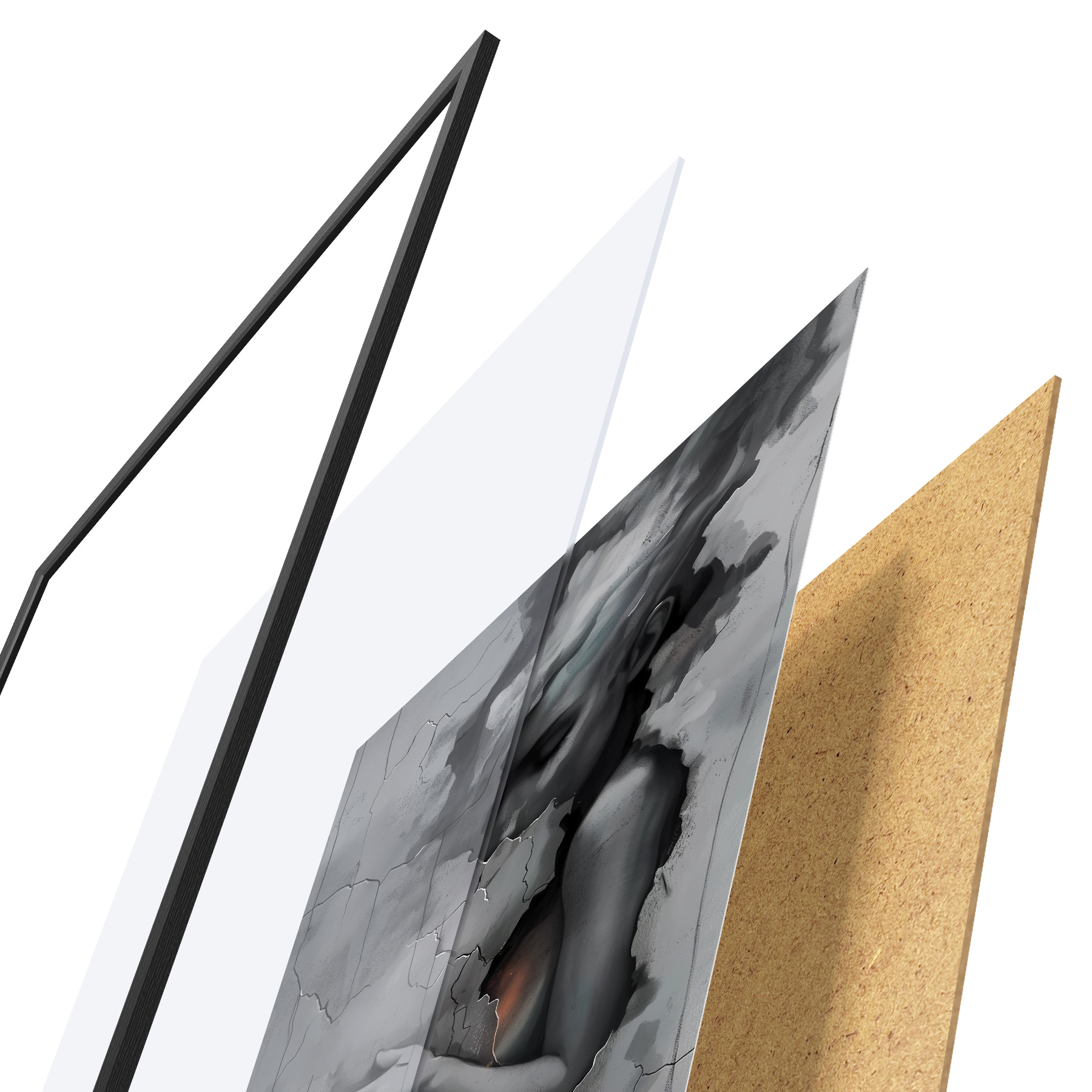 Das Poster besteht aus einem Rahmen, Plexiglas, einem gedruckten Bild und einer Rückwand aus Spanplatten. Dank der Halterungen auf der Rückseite kann das Poster sofort an die Wand gehängt werden.