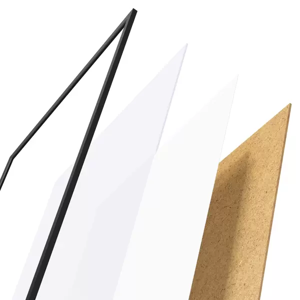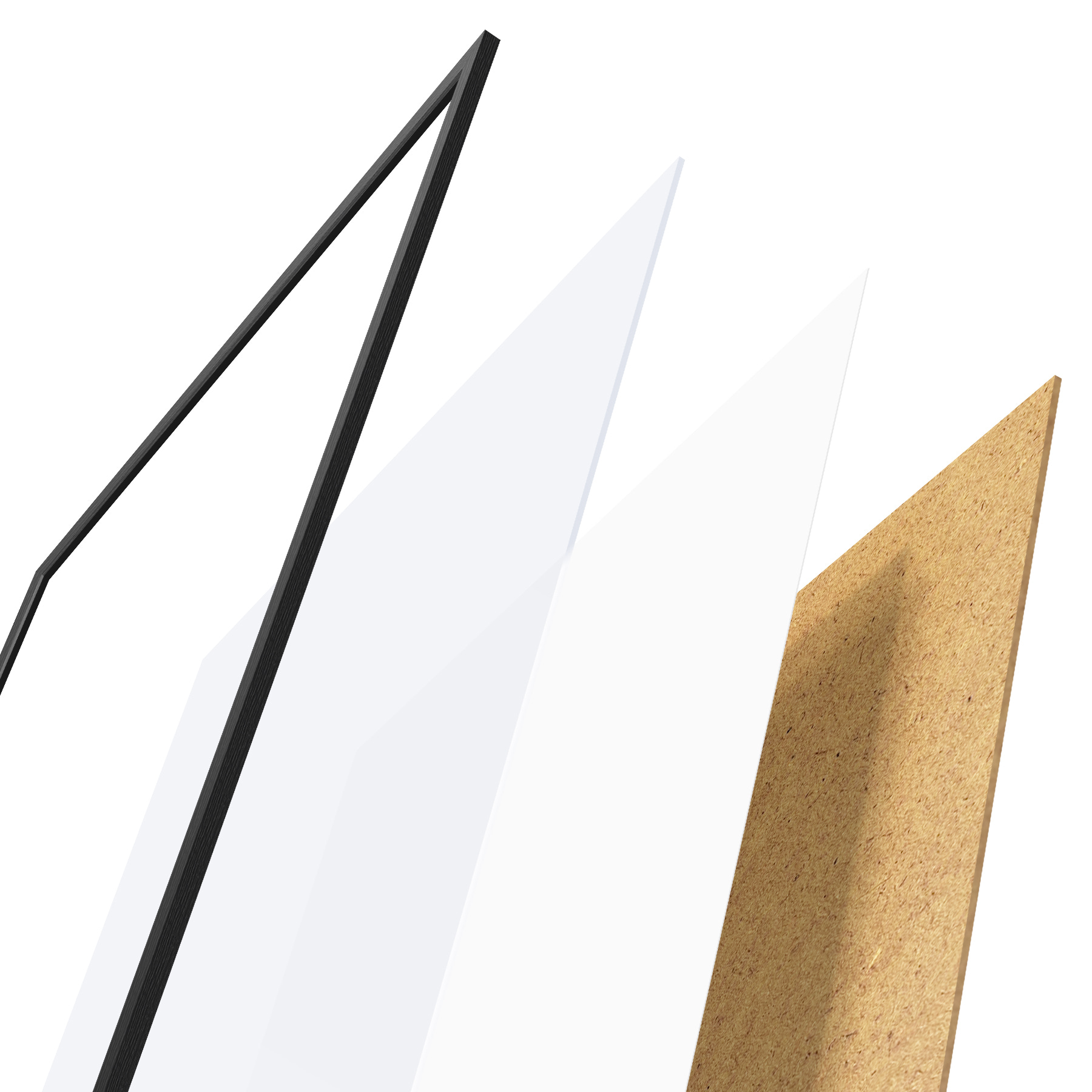 Das Poster besteht aus einem Rahmen, Plexiglas, einem gedruckten Bild und einer Rückwand aus Spanplatten. Dank der Halterungen auf der Rückseite kann das Poster sofort an die Wand gehängt werden.