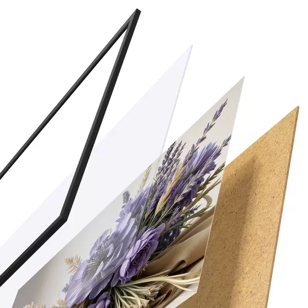 Das Poster besteht aus einem Rahmen, Plexiglas, einem gedruckten Bild und einer Rückwand aus Spanplatten. Dank der Halterungen auf der Rückseite kann das Poster sofort an die Wand gehängt werden.