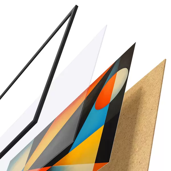 Das Poster besteht aus einem Rahmen, Plexiglas, einem gedruckten Bild und einer Rückwand aus Spanplatten. Dank der Halterungen auf der Rückseite kann das Poster sofort an die Wand gehängt werden.
