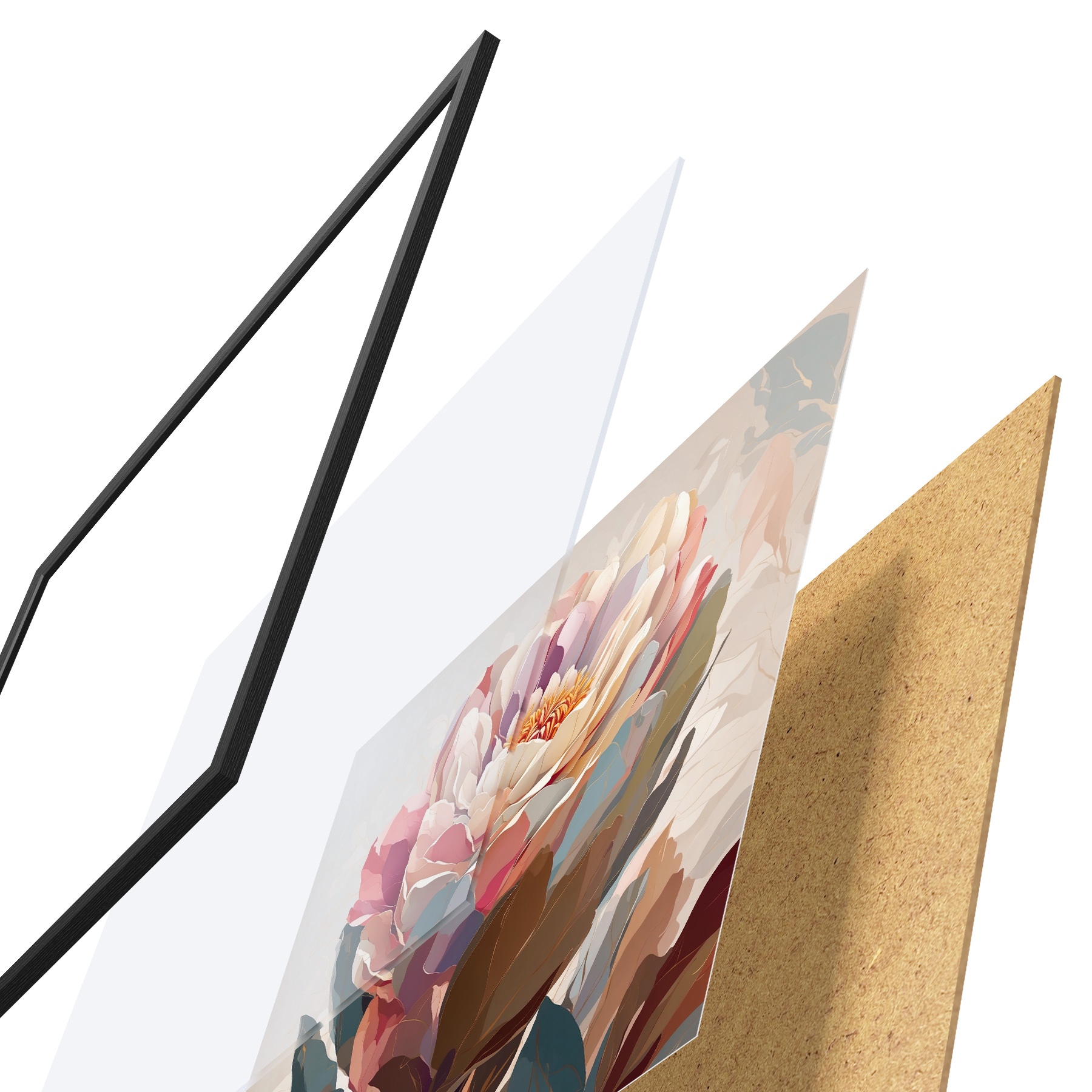 Das Poster besteht aus einem Rahmen, Plexiglas, einem gedruckten Bild und einer Rückwand aus Spanplatten. Dank der Halterungen auf der Rückseite kann das Poster sofort an die Wand gehängt werden.