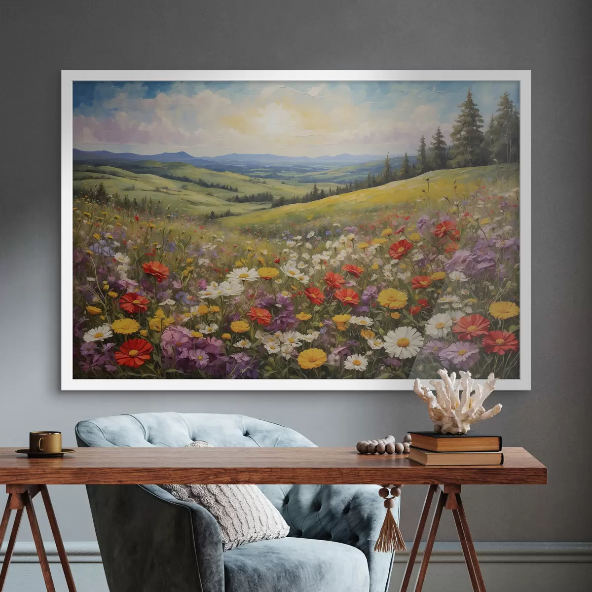 Poster Blumenfeld bei Sonnenuntergang Nr f40073