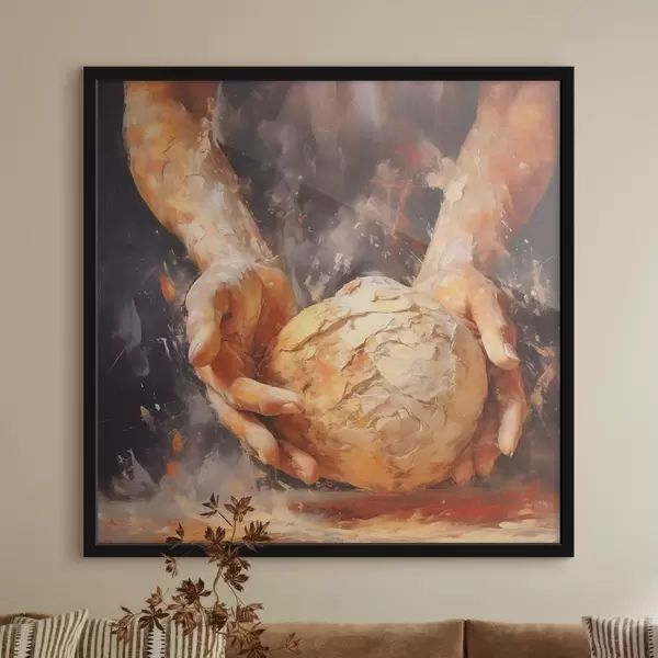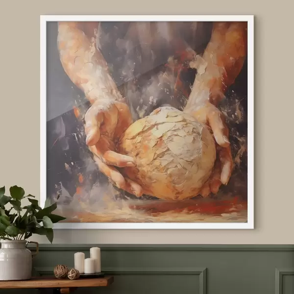 Poster Die Hände des Bäckers, die den Teig halten, Nachahmung eines Ölgemäldes f40095