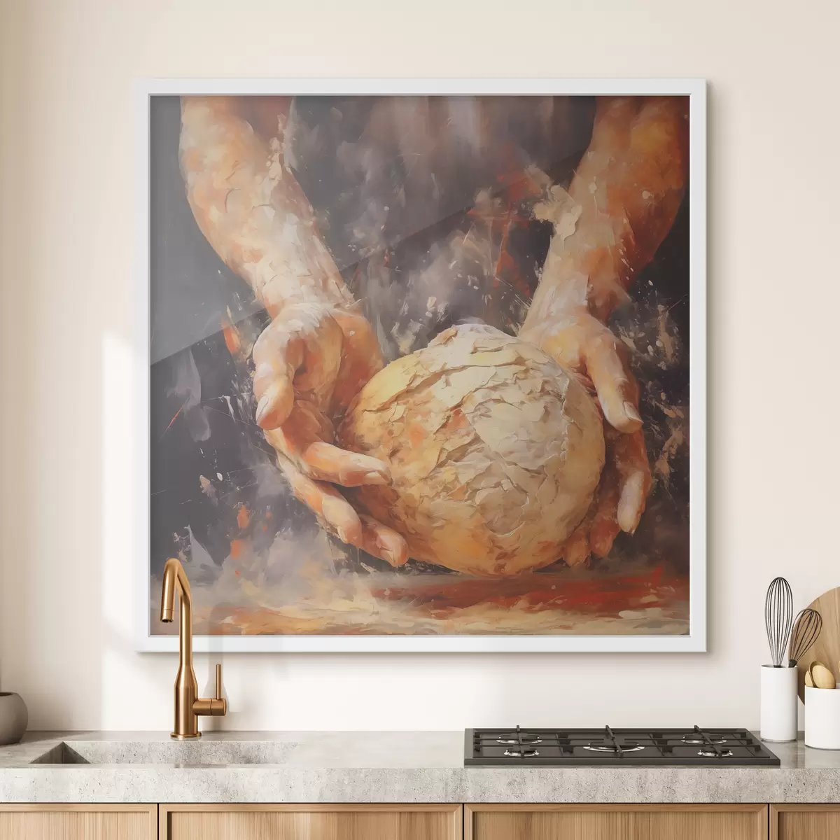 Poster Die Hände des Bäckers, die den Teig halten, Nachahmung eines Ölgemäldes Nr f40095