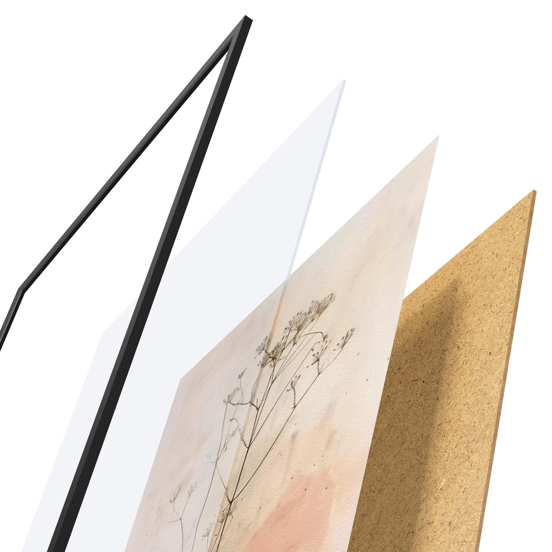 Das Poster besteht aus einem Rahmen, Plexiglas, einem gedruckten Bild und einer Rückwand aus Spanplatten. Dank der Halterungen auf der Rückseite kann das Poster sofort an die Wand gehängt werden.