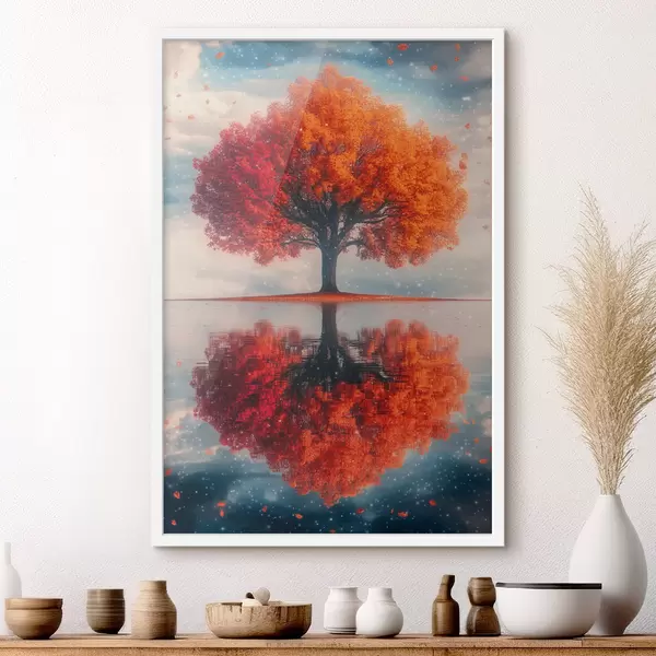Poster Baum mit Spiegelung im Wasser Nr f40126