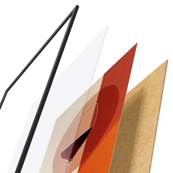 Das Poster besteht aus einem Rahmen, Plexiglas, einem gedruckten Bild und einer Rückwand aus Spanplatten. Dank der Halterungen auf der Rückseite kann das Poster sofort an die Wand gehängt werden.