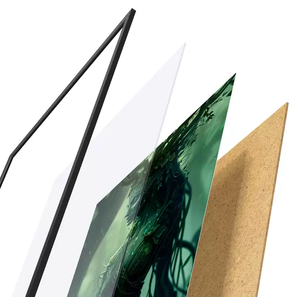 Das Poster besteht aus einem Rahmen, Plexiglas, einem gedruckten Bild und einer Rückwand aus Spanplatten. Dank der Halterungen auf der Rückseite kann das Poster sofort an die Wand gehängt werden.